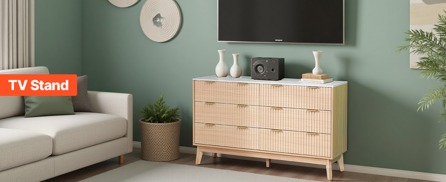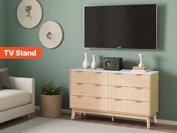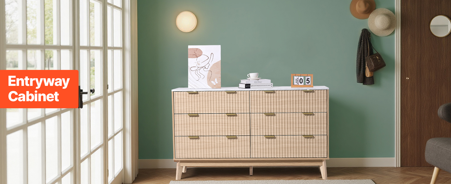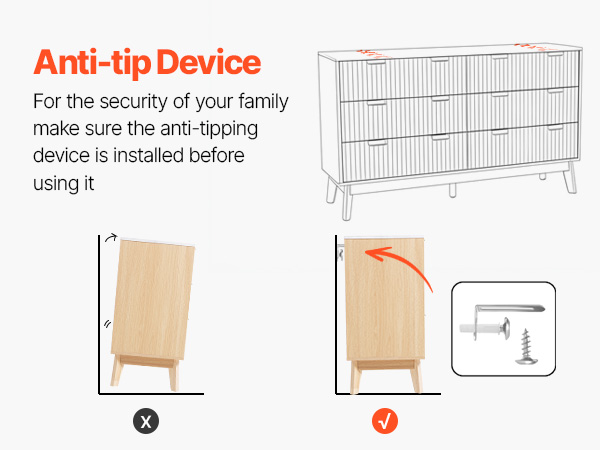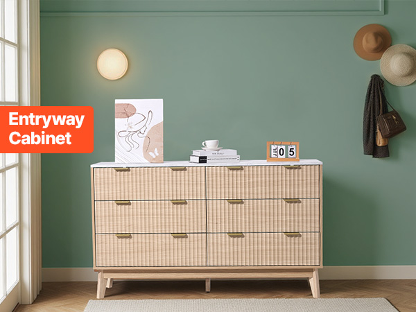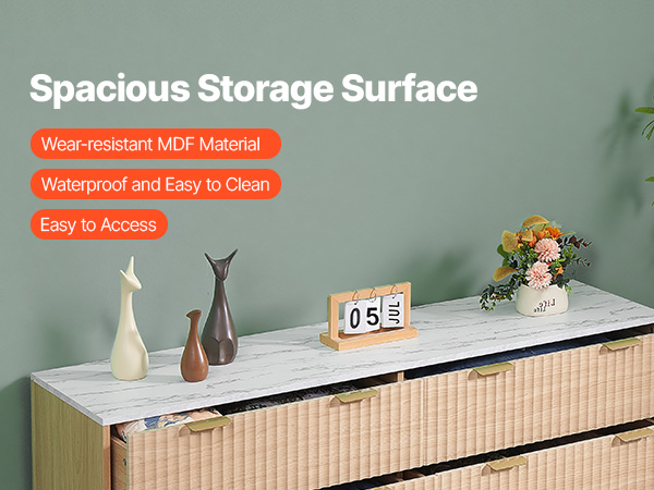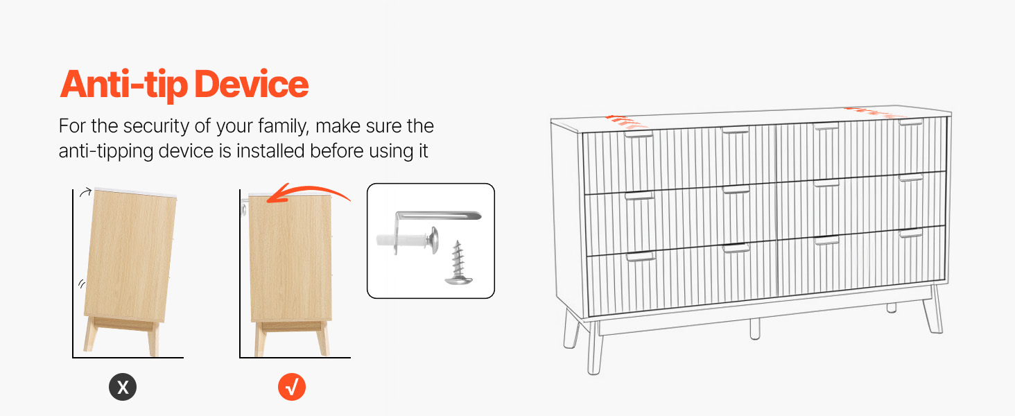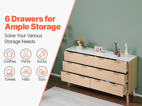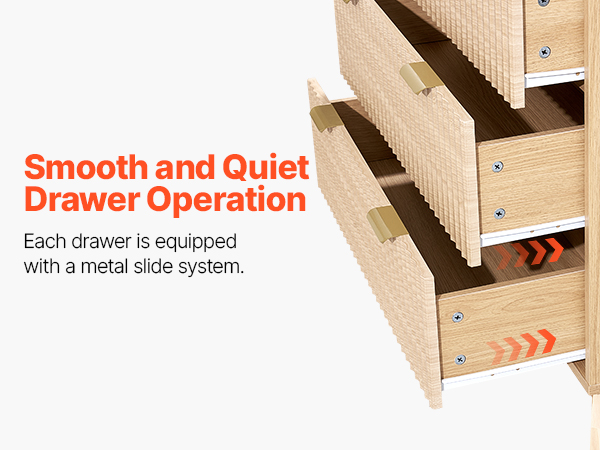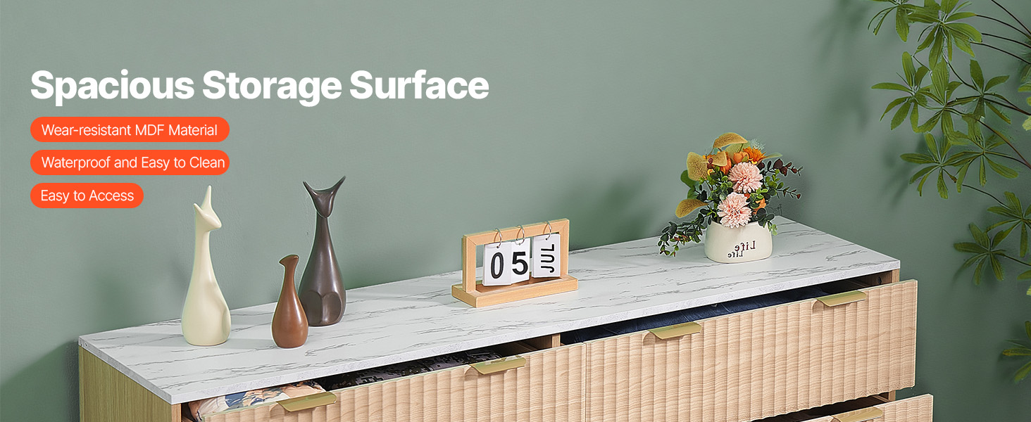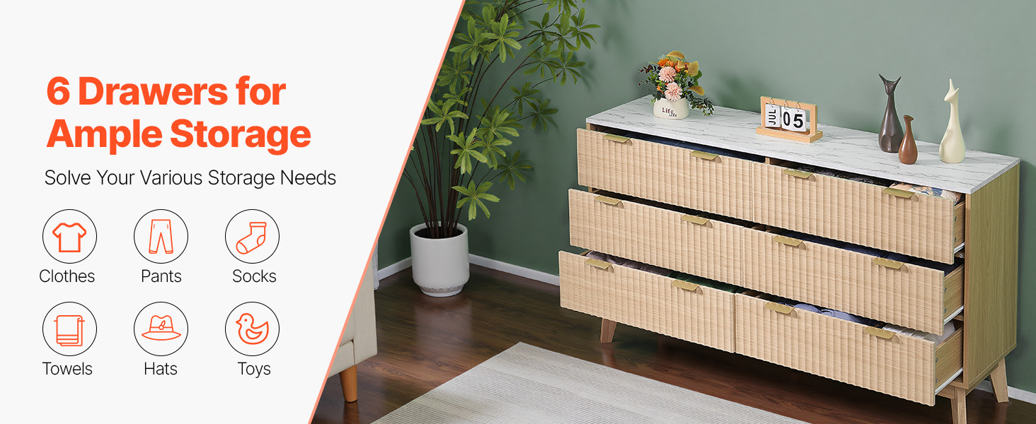 VEVOR 6 Fluted Drawer Dresser, Wooden Chest of Drawers with Sliding & Anti-tip Device, Modern Minimalist Dresser Chest, Fluted Closet Storage for Living Room, Hallway, Bedroom, Entryway, Light Wood