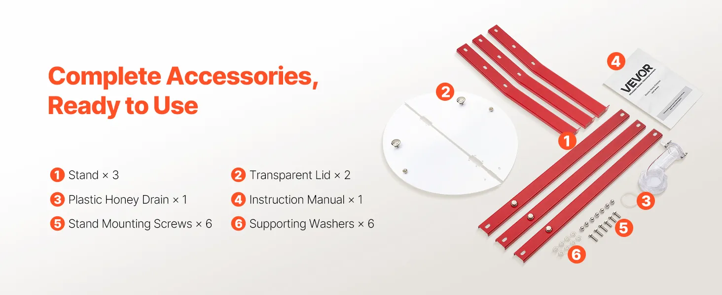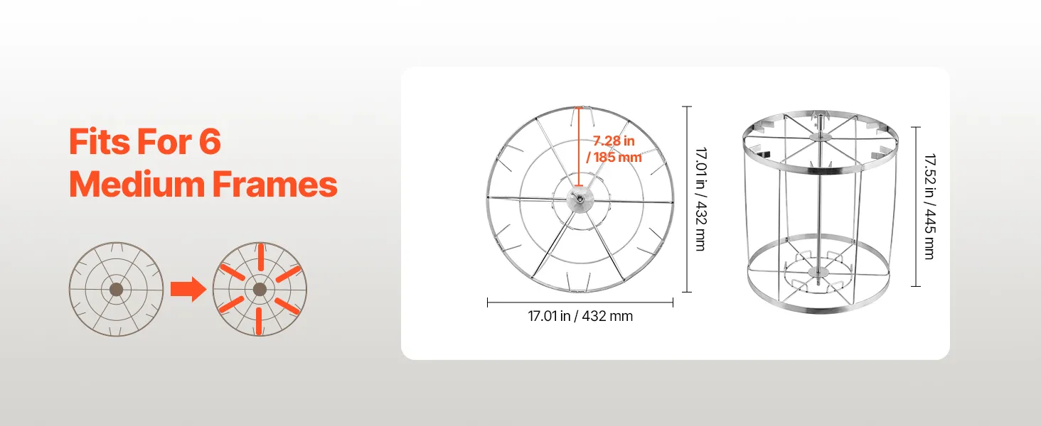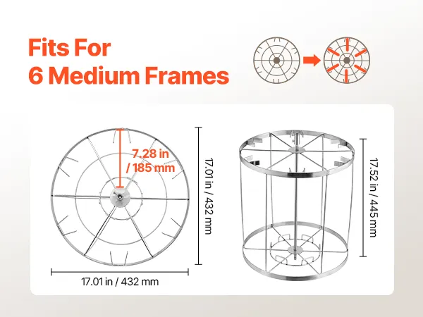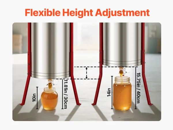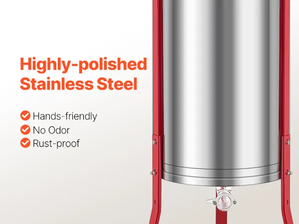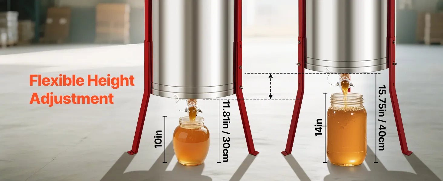 Эта 6-рамочная вытяжка для меда оснащена регулируемой высотой и прочной рамой из нержавеющей стали для стабильной работы. Благодаря всем необходимым аксессуарам он прост в использовании, подходит для средних и неглубоких рамок и обеспечивает плавное извлечение меда с регулируемой скоростью для оптимальной эффективности.
