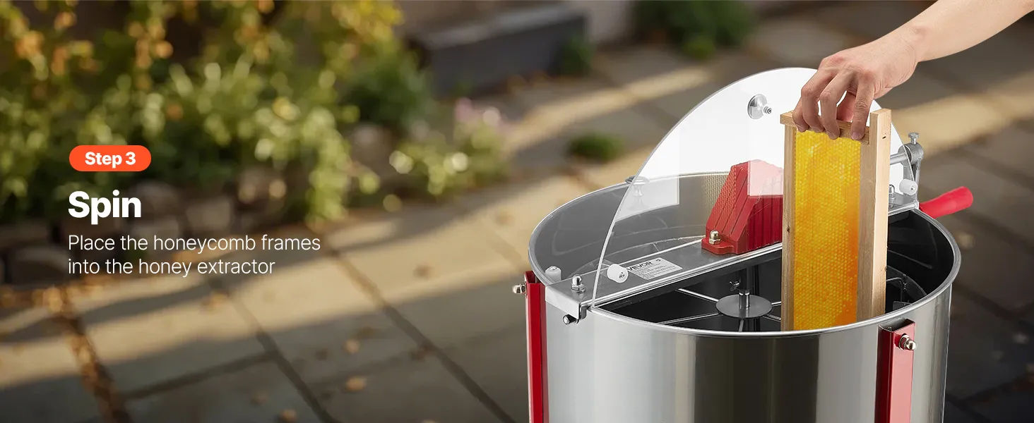 VEVOR Honey Extractor, 6 Frame Manual Honey Spinner with Transparent Lid, Stainless Steel Honeycomb Drum Spinner with Height Adjustable Stand, Honeycomb Extraction Centrifuge Equipment for Beekeeping