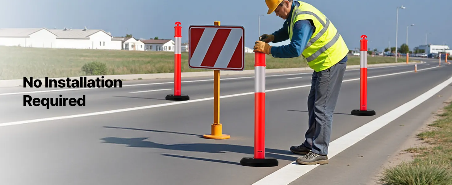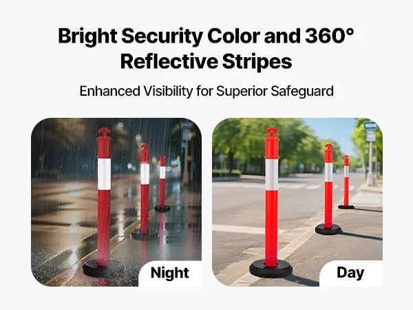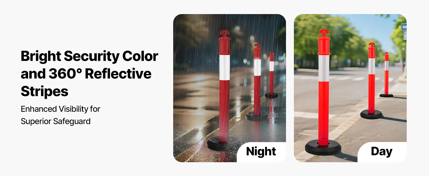 • High Visibility: Featuring high-intensity 360° reflective strips, the traffic delineator posts ensure high visibility even in low light, foggy conditions, or strong glare. It allows pedestrians, vehicles, and construction workers to identify the posts promptly, enhancing security during work or traffic diversion