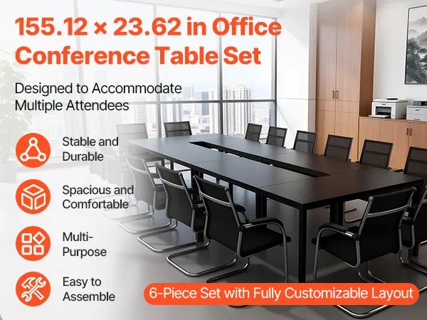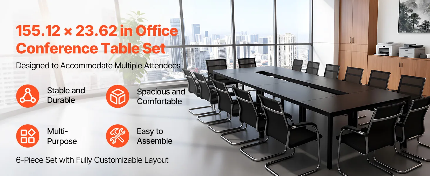• Spacious Multi-Person Workspace: Measuring 55.12 x 23.62 in, this 6-piece conference table allows flexible layouts to fit meeting needs, seating up to 16 person. Ideal for team discussions, training, and remote meetings with ample space