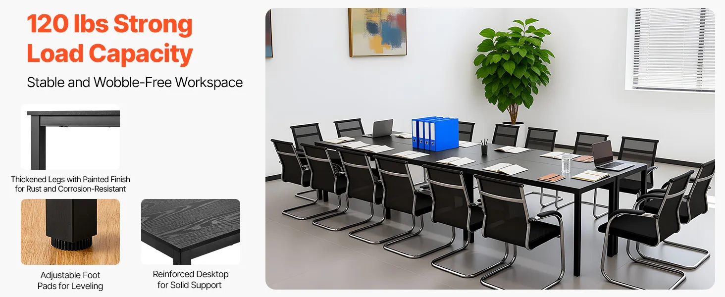 • Sturdy & Durable Build:  Made with a 0.59 in (15 mm) thick particleboard top and reinforced metal legs, this conference room table supports up to 120 lbs. Added crossbeams and an anti-rust coating ensure solid support for stability without wobbling