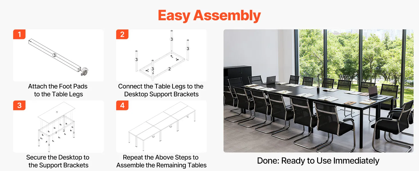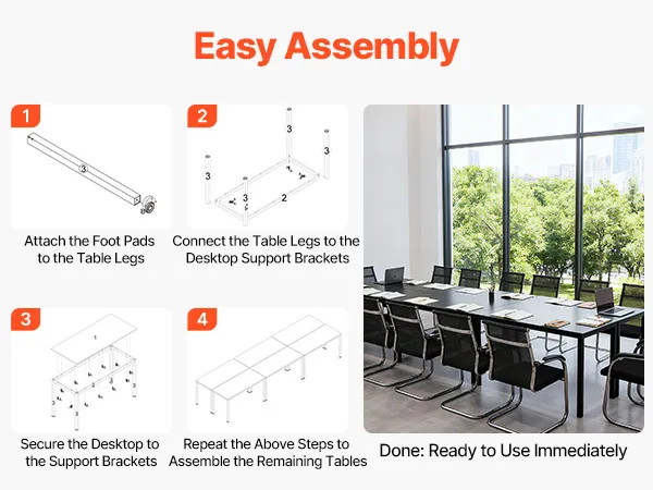 • Thoughtful Design Details:  The meeting table resists scratches and wear, standing up to rulers, pens, and daily office use. Each leg features foot pads to avoid floor scratches or dents, ensuring peace of mind even in temporary venues