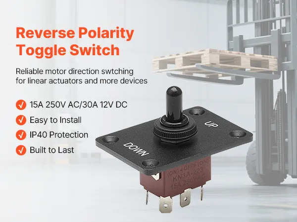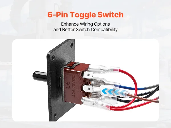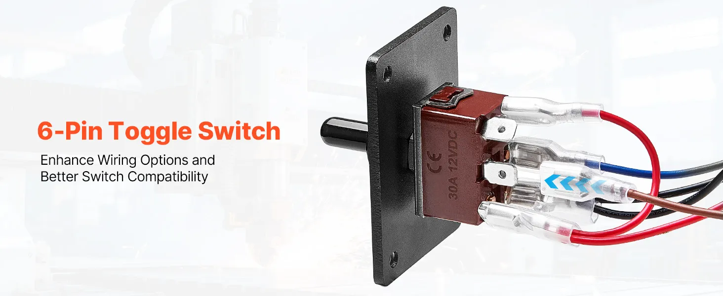 VEVOR's 6-pin toggle switch features a momentary function and a 3-position (ON)-OFF-(ON) design, providing smooth forward/reverse control. Rated for DC 12V 30A and AC 250V 15A, it ensures reliable performance across a wide range of automation systems.