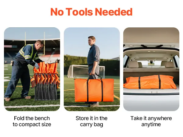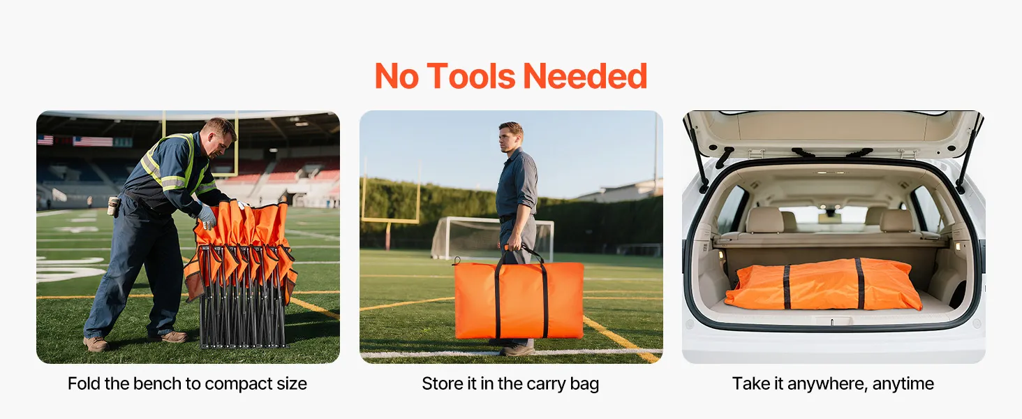 • Easy to Fold and Move: Our soccer bench seating is simple to transport, and its efficient storage design maximizes space utilization. Ideal for outdoor and indoor settings—sports fields, parties, gatherings, or commercial venues—it can be set up in just seconds for instant seating