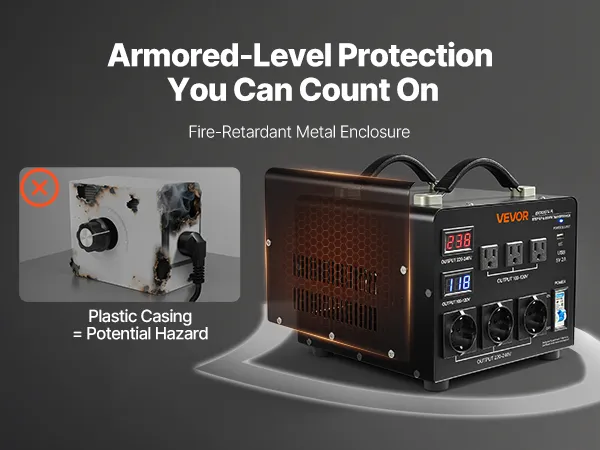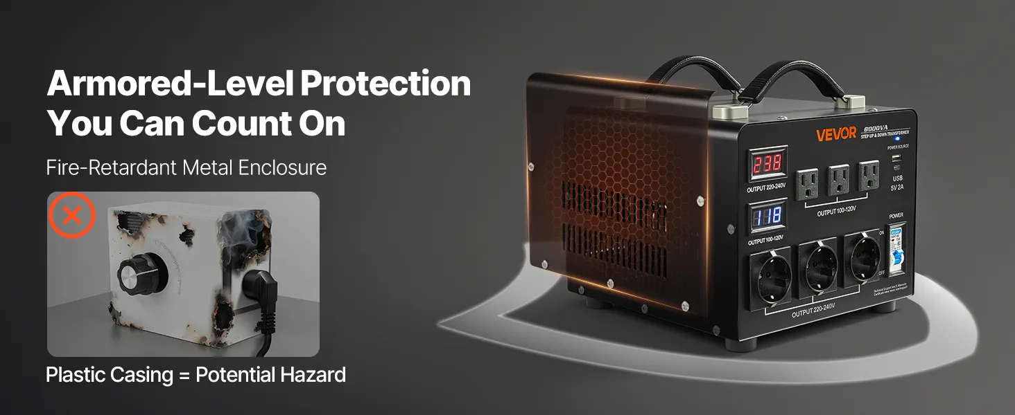 • Security Comes First: This voltage converter transformer features dual protection: an air switch for overcurrent protection and a resettable circuit breaker for overload protection. Keeps your devices secure during operation