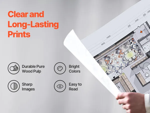 Этот рулон CAD-бумаги изготовлен из чистой древесной массы, что обеспечивает четкие, яркие и легко читаемые отпечатки. Каждая деталь прекрасно выделяется благодаря долговечному качеству.
