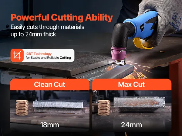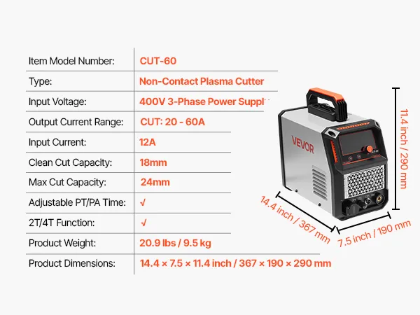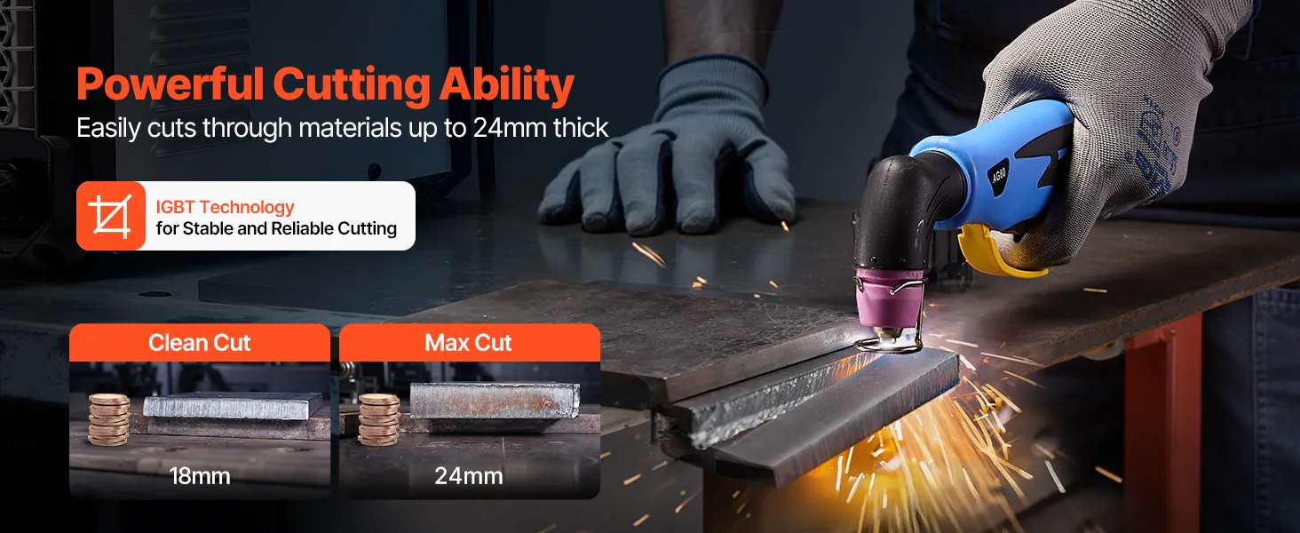60A maximum output current supports clean cuts up to 18mm, with a maximum cutting thickness of 24mm. (Designed with 400V 3-phase power supply, primarily intended for industrial use)