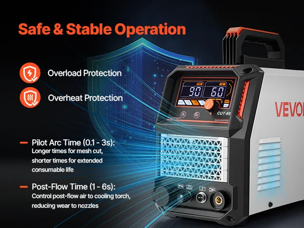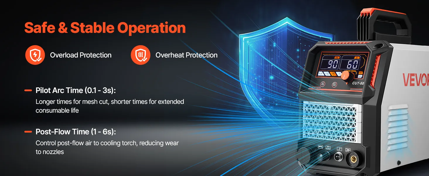 This plasma cutting machine features advanced IGBT inverter technology for precise control, delivering stable and reliable cuts. Equipped with multiple protection systems, it ensures comprehensive safety for your cutting tasks!