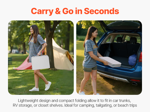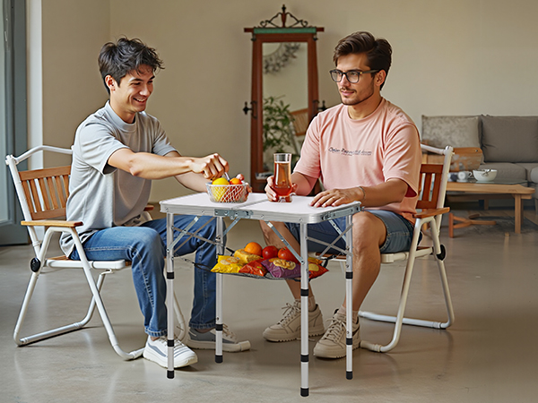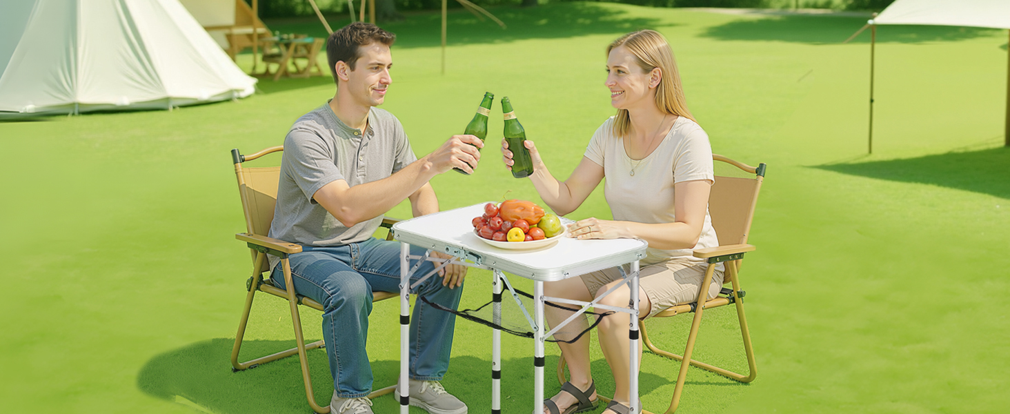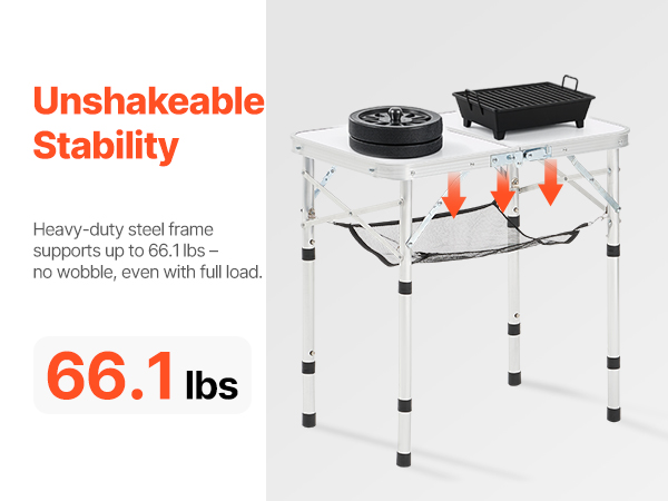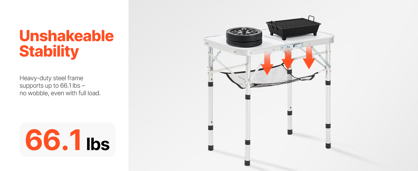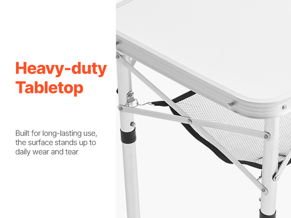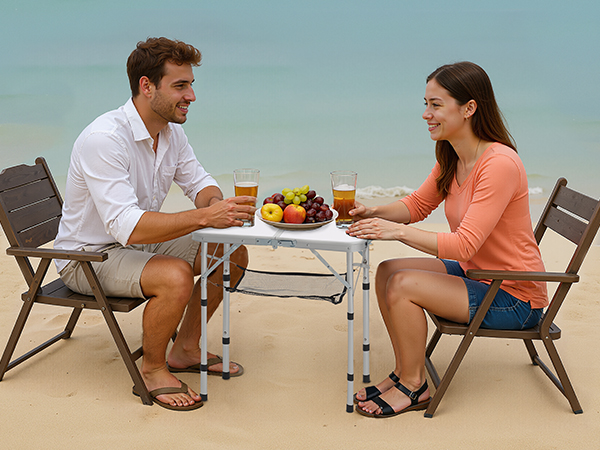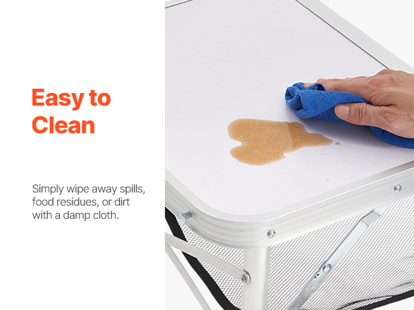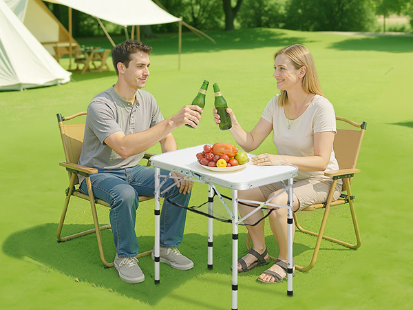 • MDF Surface: The scratch-resistant MDF tabletop offers a smooth, elegant finish ideal for casual indoor gatherings or outdoor. The folding camping table supports up to 66 lbs while resisting minor impacts and daily wear
