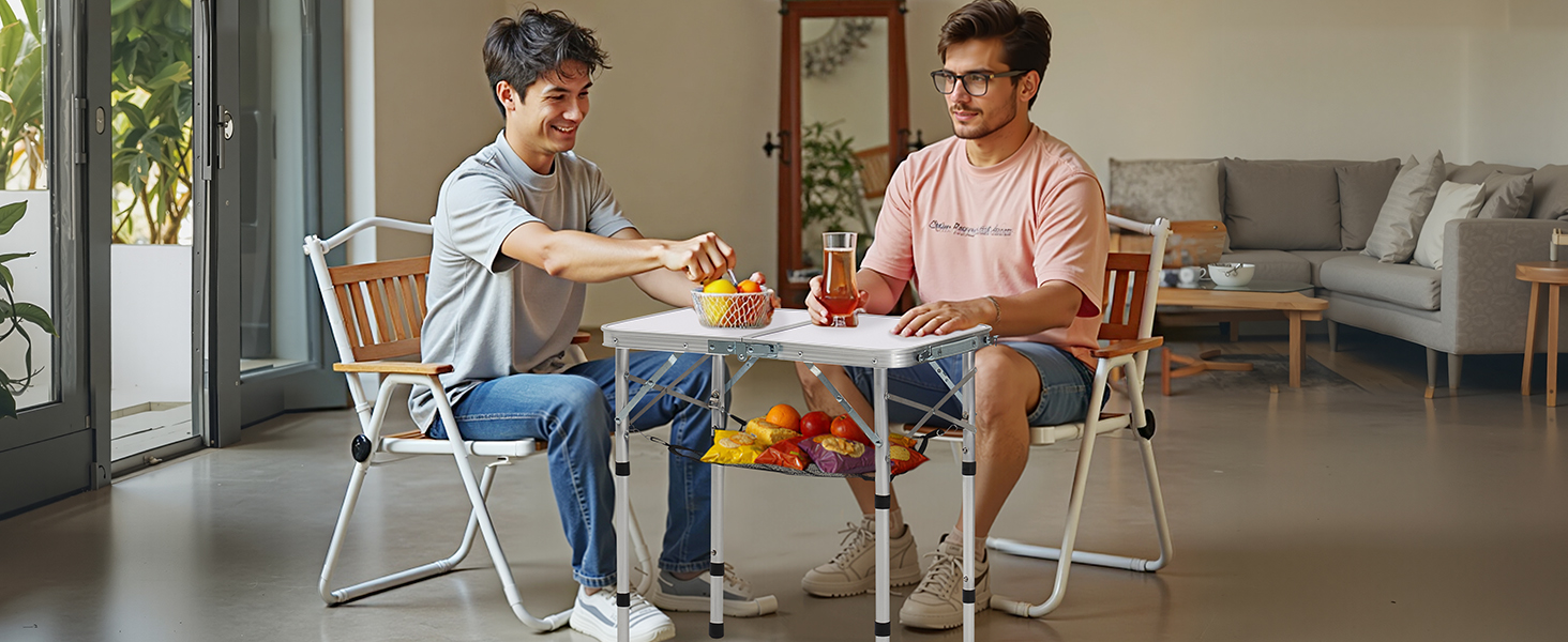 • Secure Locking & Portable: Dual latches and reinforced leg locks help keep the small outdoor table stable, reducing the risk of accidental collapse. Foldable design with built-in handle allows easy transport—fits car trunks or closets