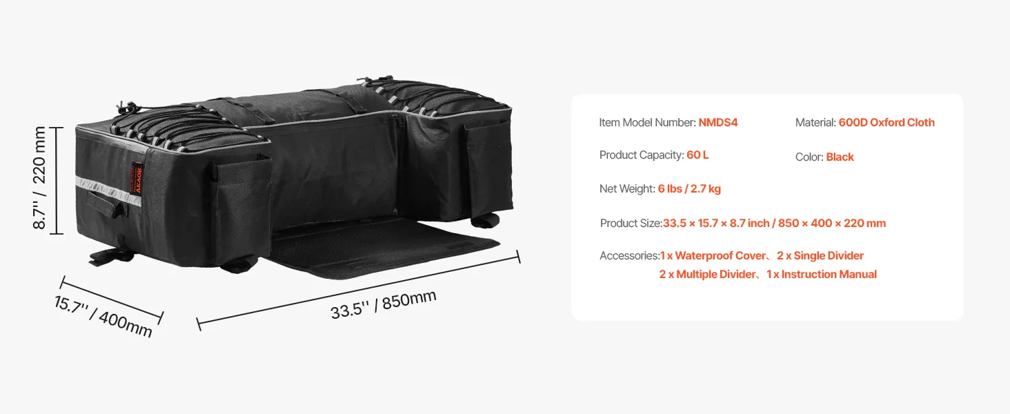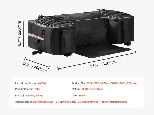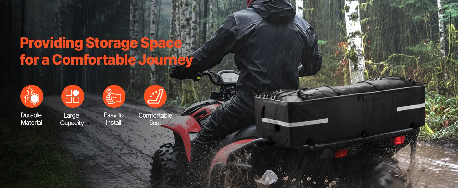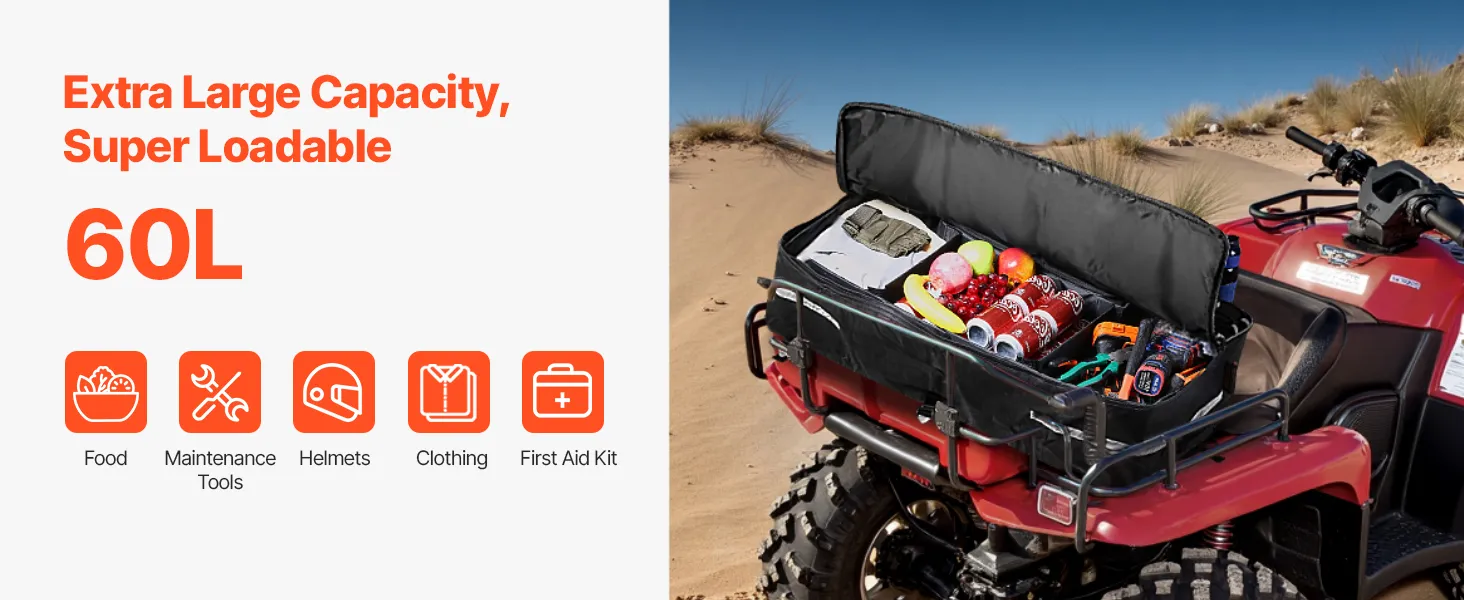 This 60L ATV rear storage bag offers the perfect blend of functionality and comfort. With a generous 60L capacity, it efficiently organizes and keeps your essentials within reach. Made from high-quality 600D oxford cloth, it’s designed to provide lasting protection for your gear.