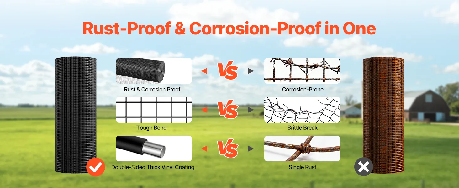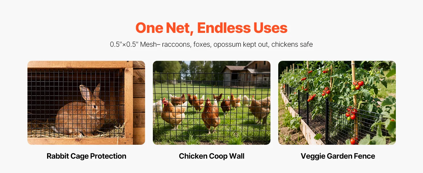 This wire mesh roll can be used as animal cages, garden enclosures, or even as decorative or artistic installations. Create a secure zone in one rolling step. It is ideal for livestock, gardening, or general outdoor security