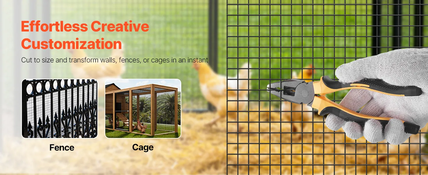 Comes with 1 cutter and 1 pair of gloves, letting you trim walls, fences, or cages as you like.