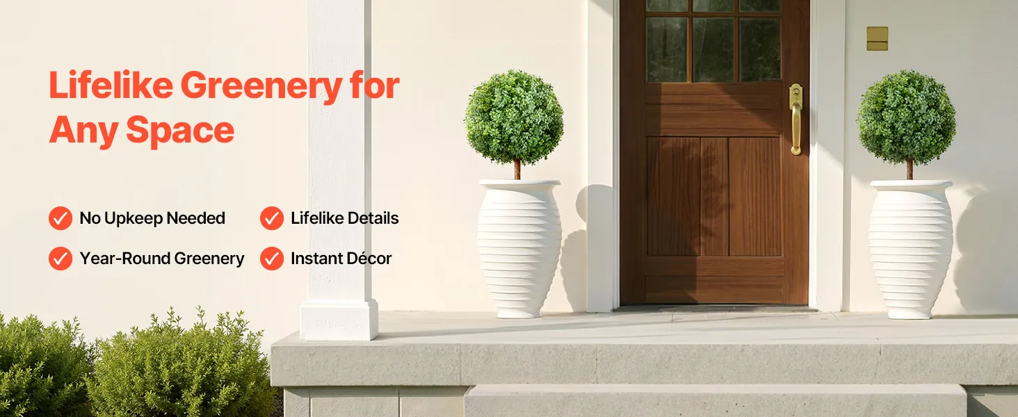 Lifelike artificial topiary that adds year-round greenery and style to any indoor or outdoor space without the need for maintenance.