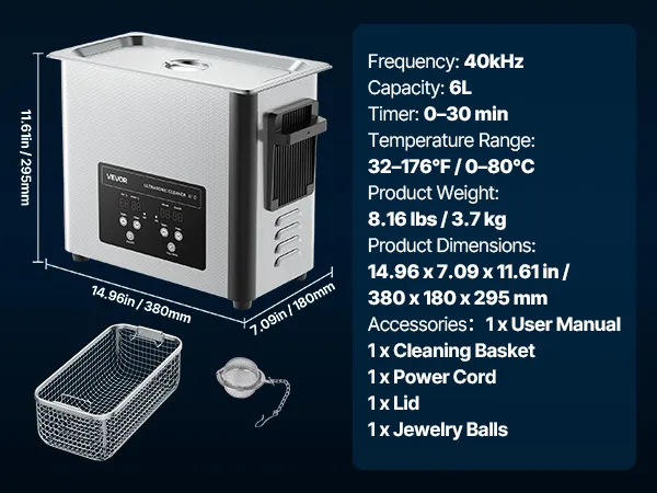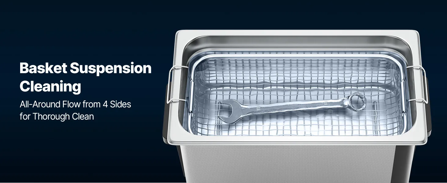 • Premium Quality Design: The sonic cleaner features a corrosion-resistant stainless steel basket and inner tank, while the basket avoids scratches. Upgraded handle makes full-tank transport easy and the digital display ensures simple, precise operation