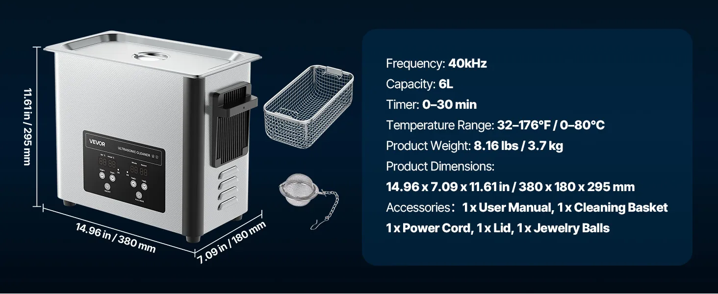 • Wide Application Range: Ideal for metals and precision instruments alike: carburetors, mechanical parts, airbrushes, watch bands, hardware, lab components, and more. Customizable temperature and timer settings cover more materials and scenarios