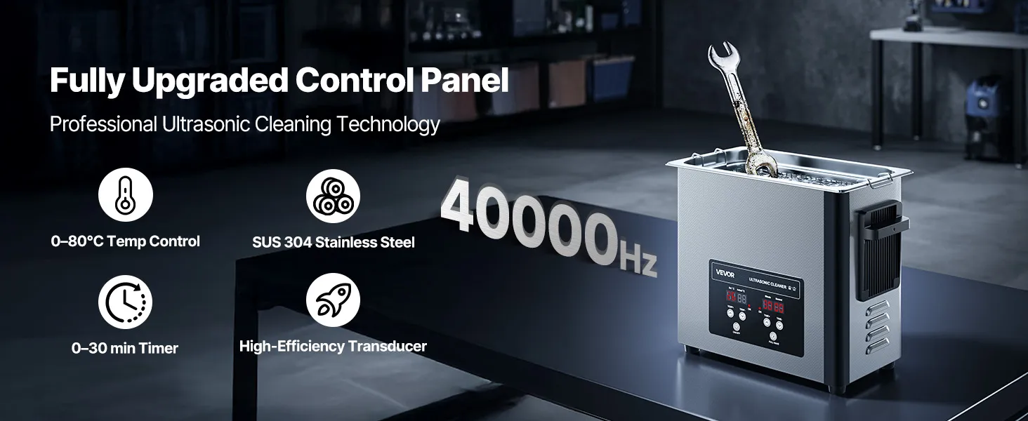 • Powerful Cleaning Performance: 40kHz ultrasonic waves generate 40,000 microbubbles per second, “bursting” like thousands of tiny brushes. They remove grease, dirt, and debris from carburetor channels, airbrush tips, watch band, small hardware and more