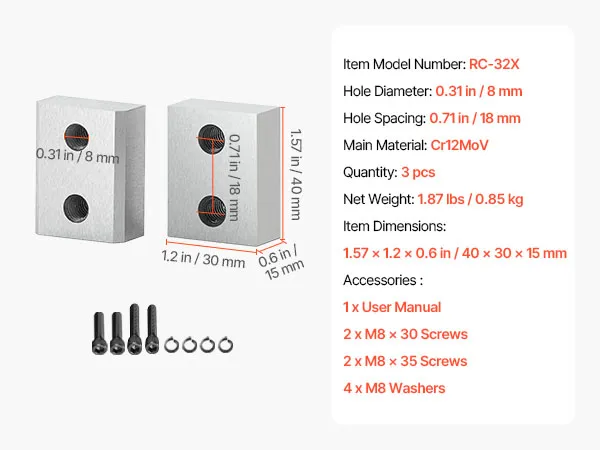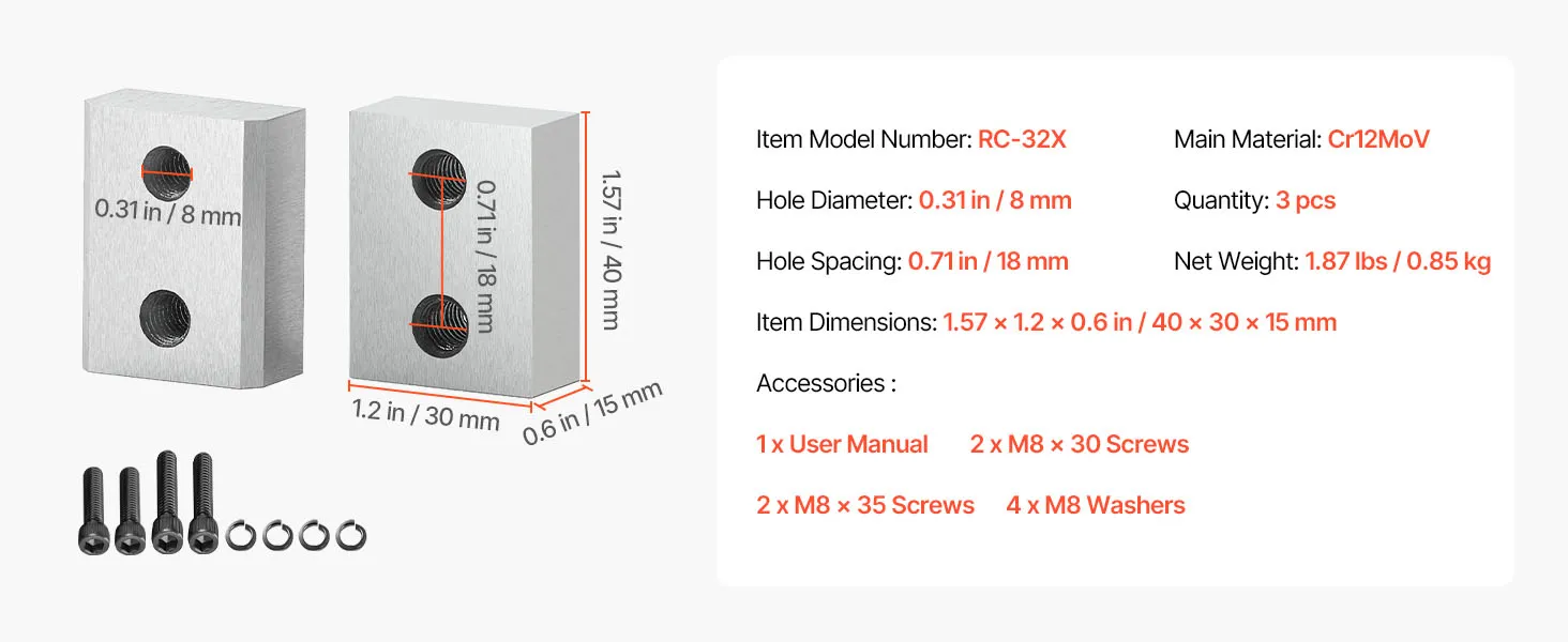 VEVOR Rebar Cutter Blades, 6 Pcs Replacement Jaw Blades for 1-1/4 Inch 32mm #10 Electric Rebar Cutter, Double-sided, CR12MOV High-Hardness Steel, Fast Efficient with Screws and Spring Washer