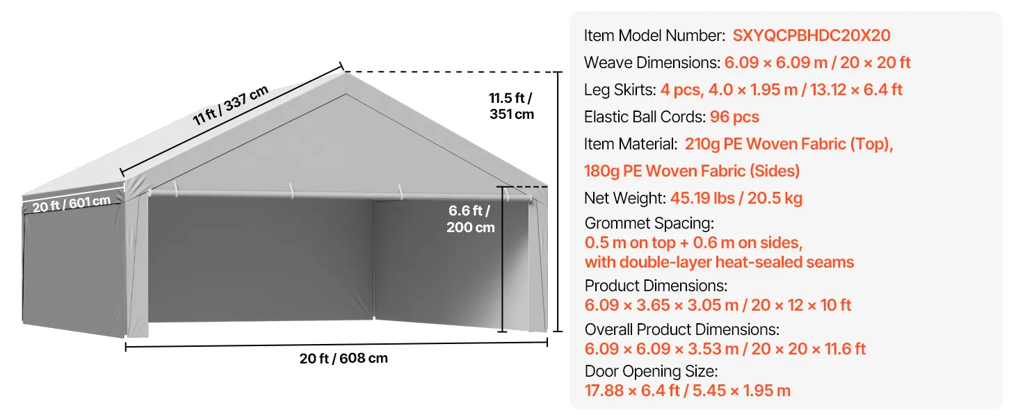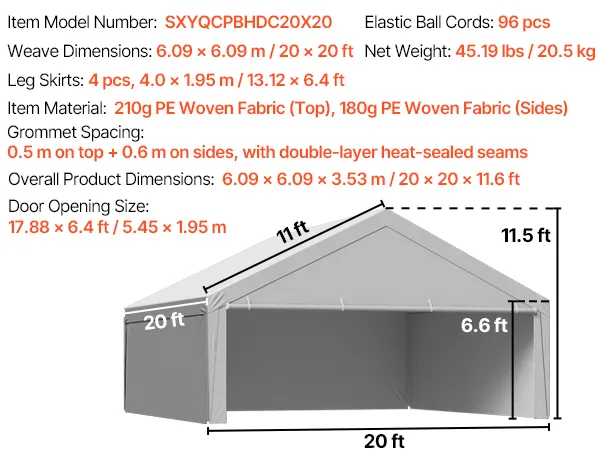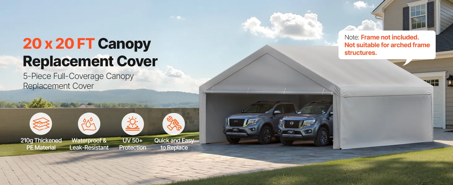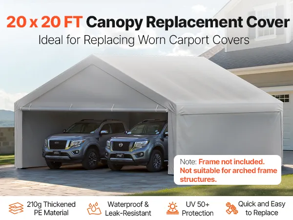 The standard 20×20 ft carport replacement cover is designed to fit most carport frames. No trimming or modifications required for easy replacement. It is ideal for quick DIY replacement.