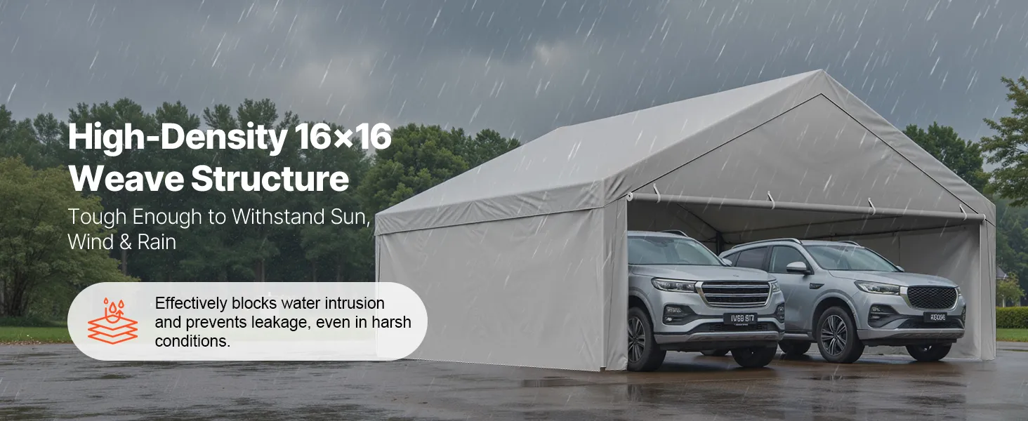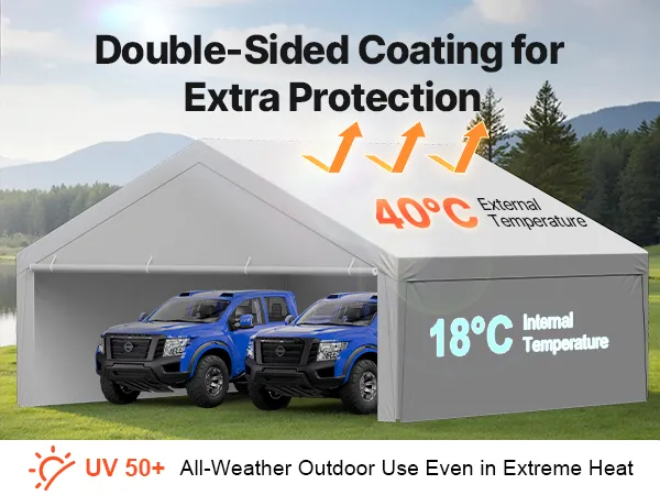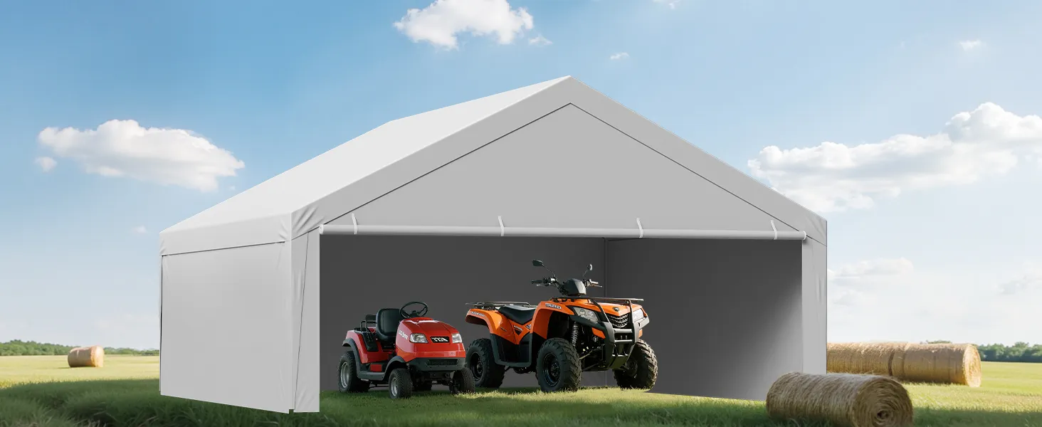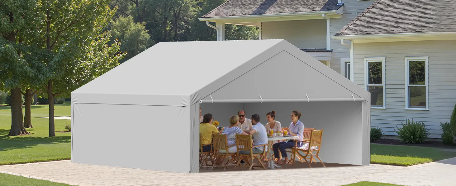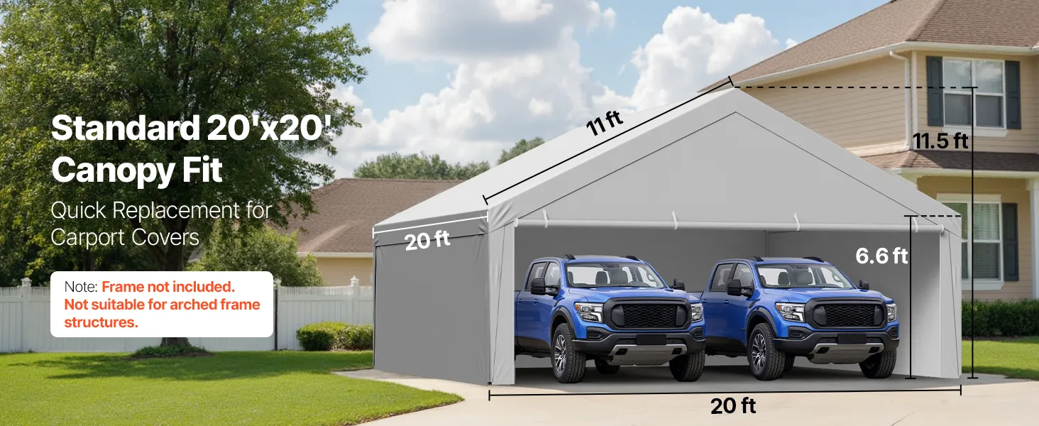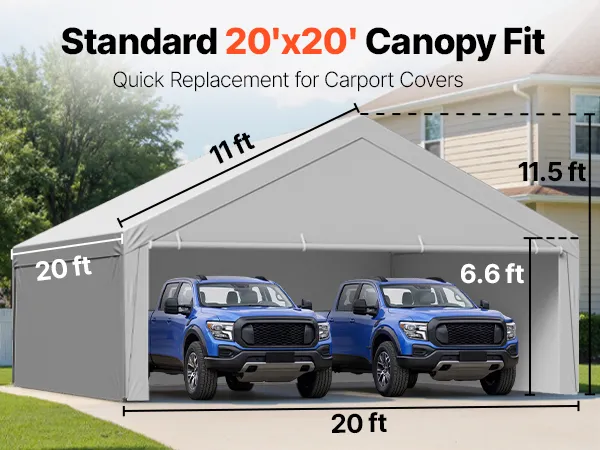 The standard 20×20 ft carport replacement cover is designed to fit most carport frames. No trimming or modifications required for easy replacement. It is ideal for quick DIY replacement.