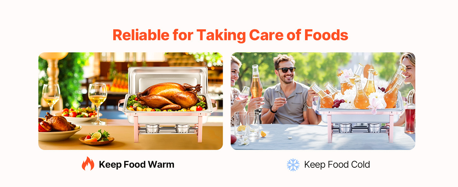 A1: This chafing dish is specifically designed to keep food warm. While it’s ideal for hot dishes, it can also be used for cold items as long as they are stored without heating. For best results, we recommend using it for hot food.