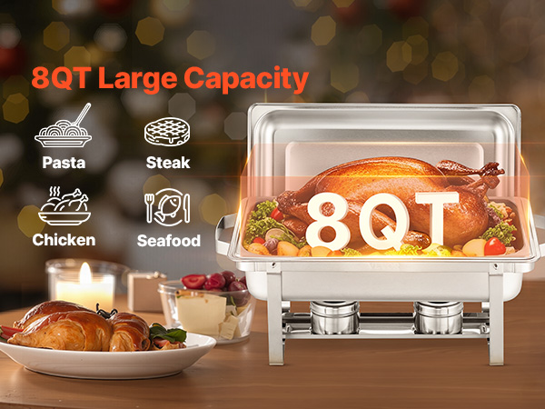 • Вместимость 8 кв.т: Благодаря большой емкости эта жарочная машина для кейтеринга вмещает несколько порций ваших любимых блюд. Прилагаемый многофункциональный зажим для посуды позволяет легко подавать макароны, стейки, суп, курицу и многое другое.