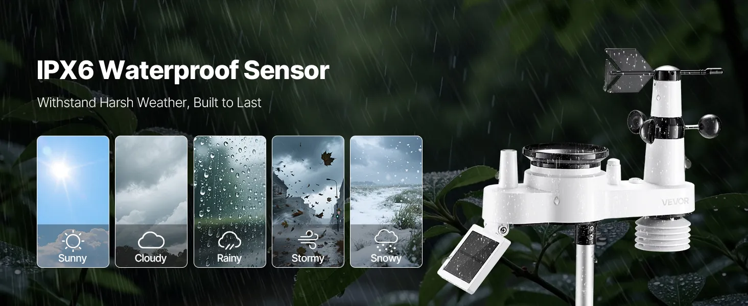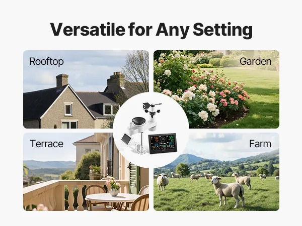 • 492 ft Transmission Distance: Install your outdoor sensor wherever you need it—on rooftops, farms, or gardens. With an IPX6 waterproof rating, this outdoor sensor delivers reliable data even in heavy rain