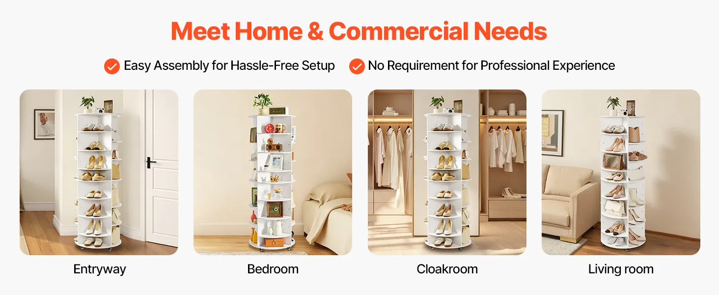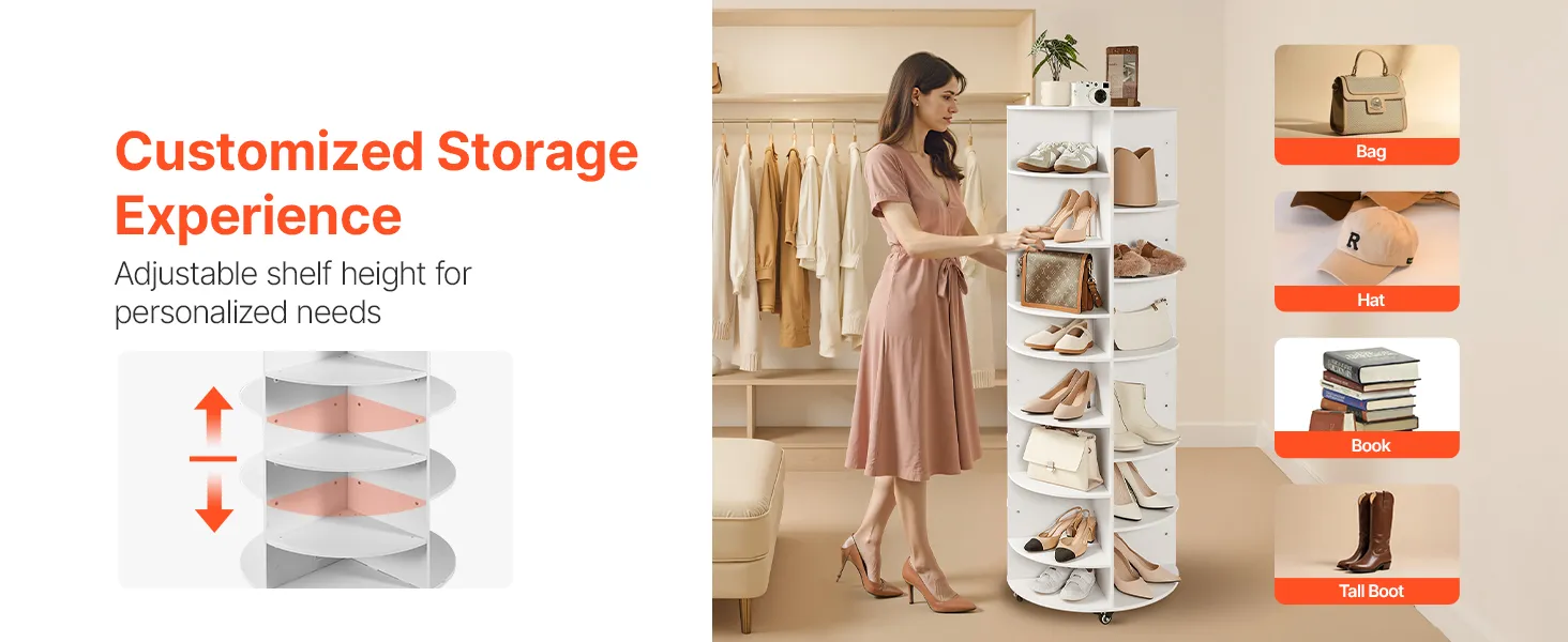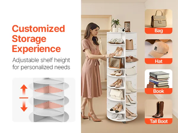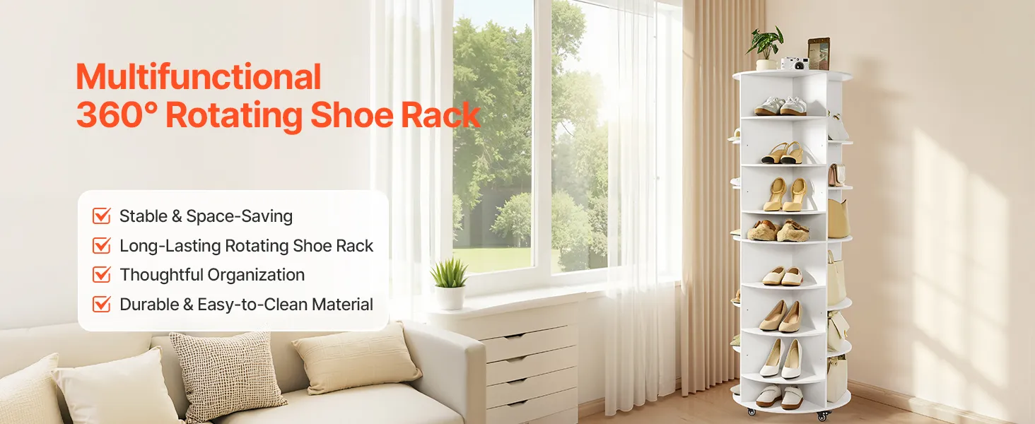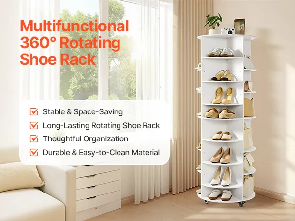 • Moveable Rotating Wheels: The rotating shoe rack features moveable wheels and can 360° rotating. Its 360° rotating design makes grabbing your shoes quick and simple, support frequent daily use. 4 lockable caster can keep it in one place.