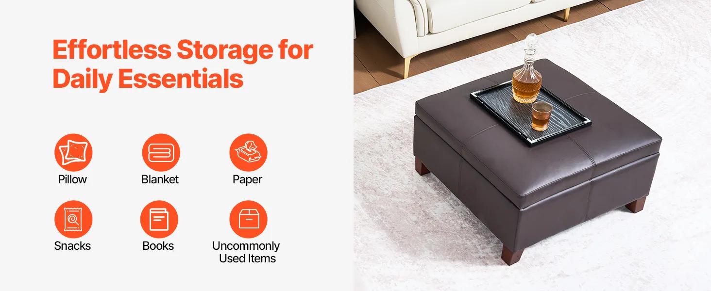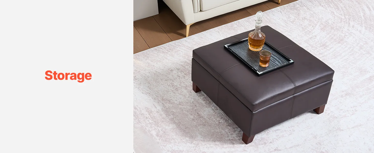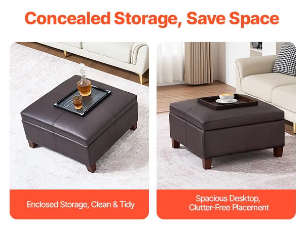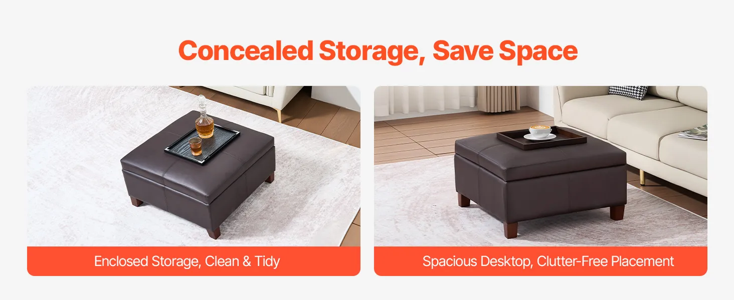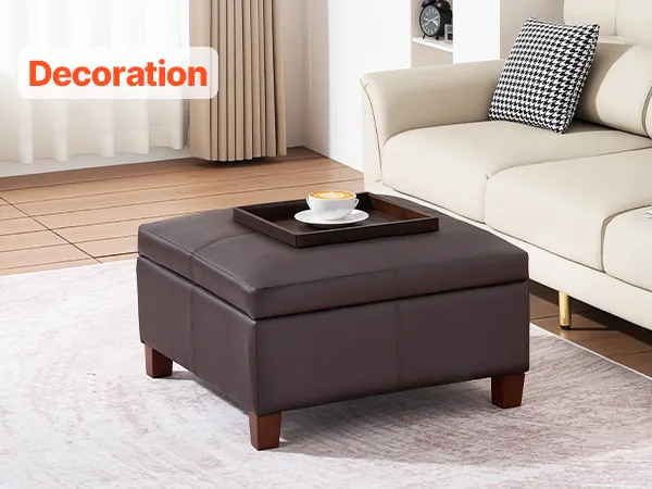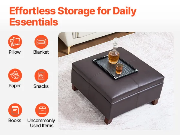 • More Space, Less Mess: Spacious and stylish, this square leather ottoman with storage stores daily essentials and serves as a handy tabletop. Enjoy more comfort and less clutter in your living room or bedroom with this multi-use piece that fits your lifestyle