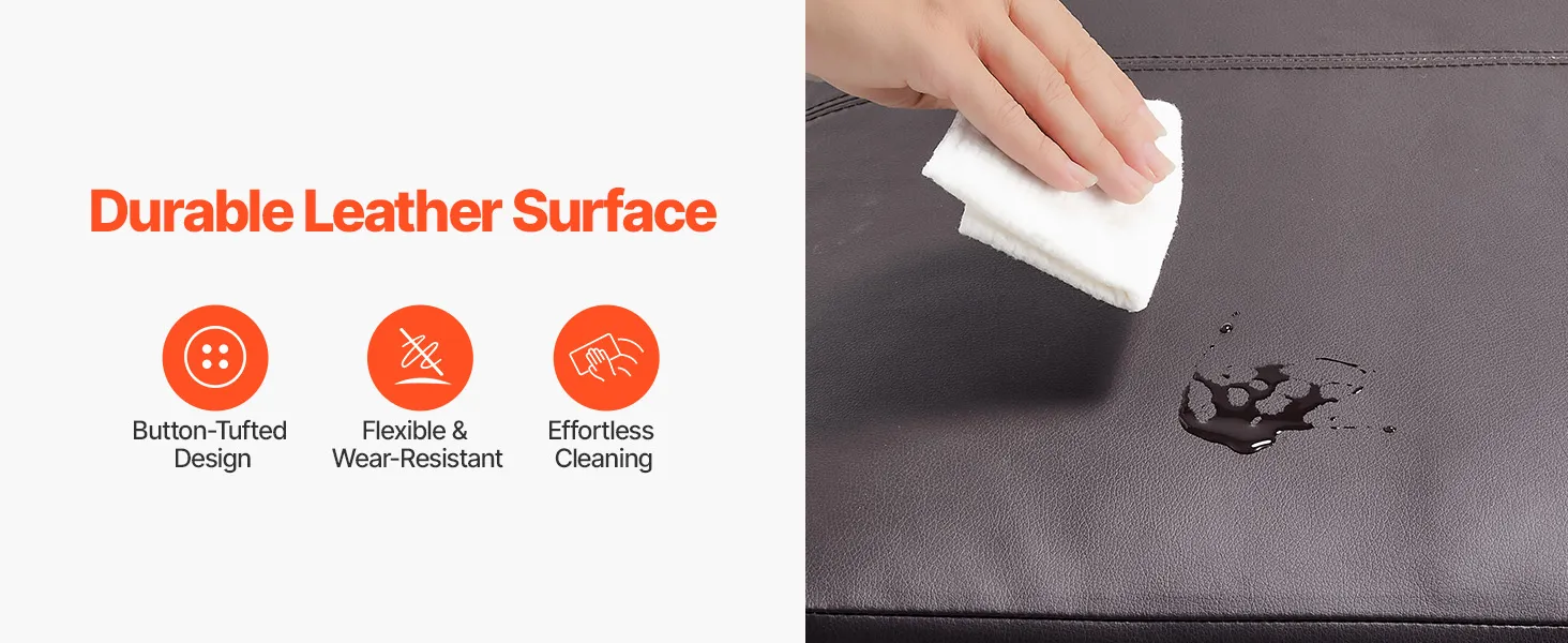 • All-in-One Storage Ottoman: Combining classic tufted design with everyday function, this leather ottoman coffee table stores your essentials while doubling as a coffee table, office bench, or footrest. It’s your go-to for comfort, storage, and style in any room