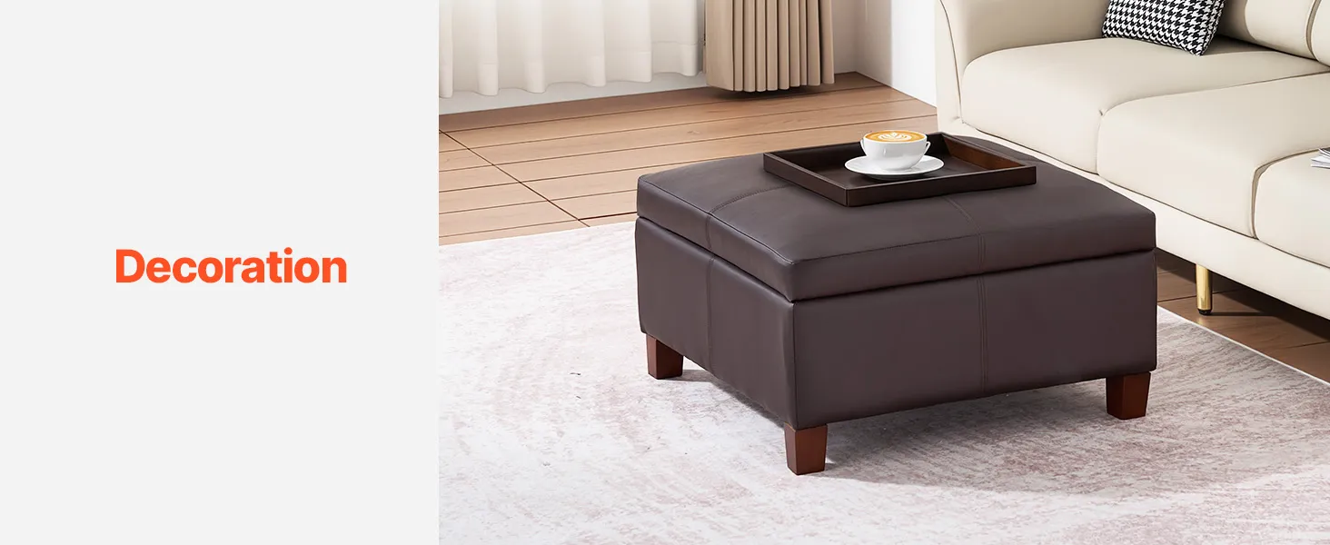 • Cozy Feel, Strong Build: Built with solid wood and filled with high-density foam, this large storage ottoman delivers both comfort and support. The leather top wipes clean easily, letting you enjoy drinks or snacks without stress. Holds up to 250 lbs with ease