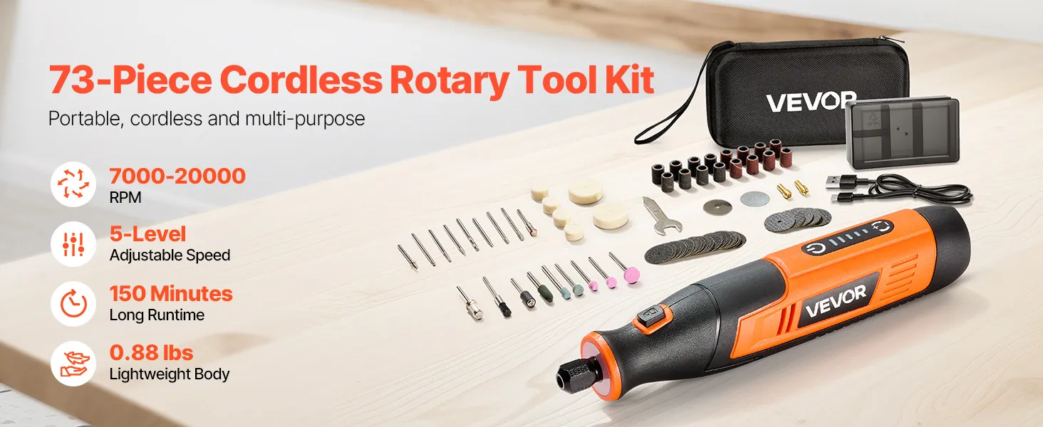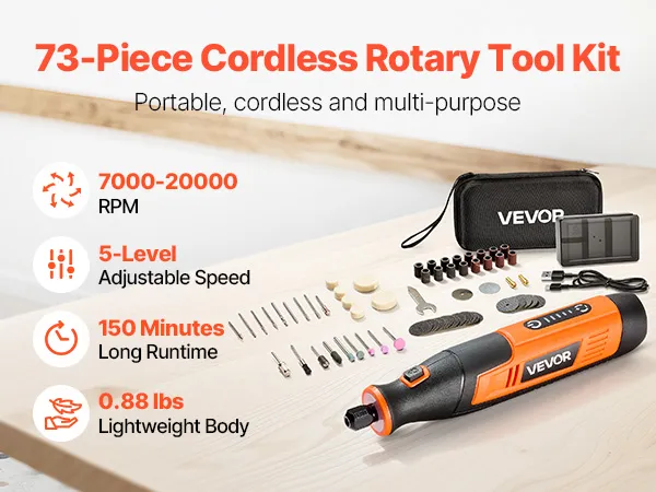 VEVOR аккумуляторный ротационный набор из 73 предметов, 4В DC, 7000–20000 об/мин, 5 скоростей, мини-инструмент для DIY