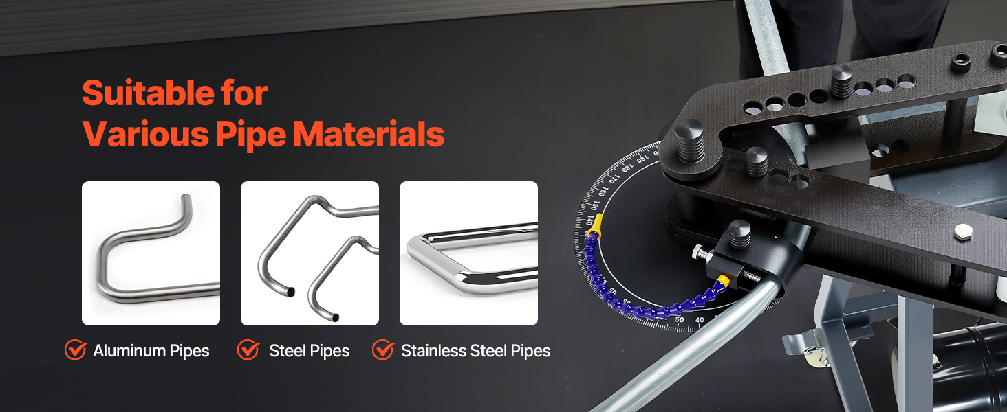 Our electric tube bender is equipped with a powerful 750W motor and 6L large hydraulic cylinder, capable of handling various pipe bending tasks. It offers a maximum bending thickness of up to 5mm and 180° maximum bending angle, suitable for steel, aluminum pipes ranging from 3/4 to 2 inch.