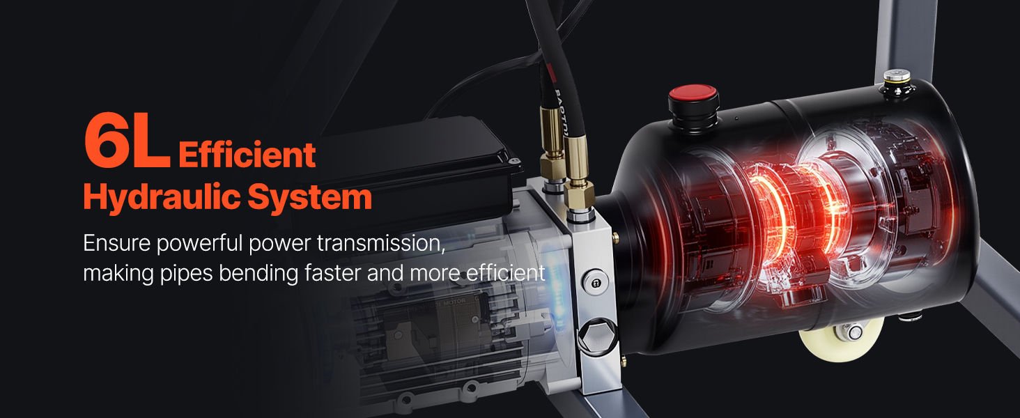 Equipped with a 6L hydraulic cylinder, this electric pipe bender provides stable and efficient performance, ensuring precise bending. (NOTE: Hydraulic oil is not provided, please prepare it yourself.