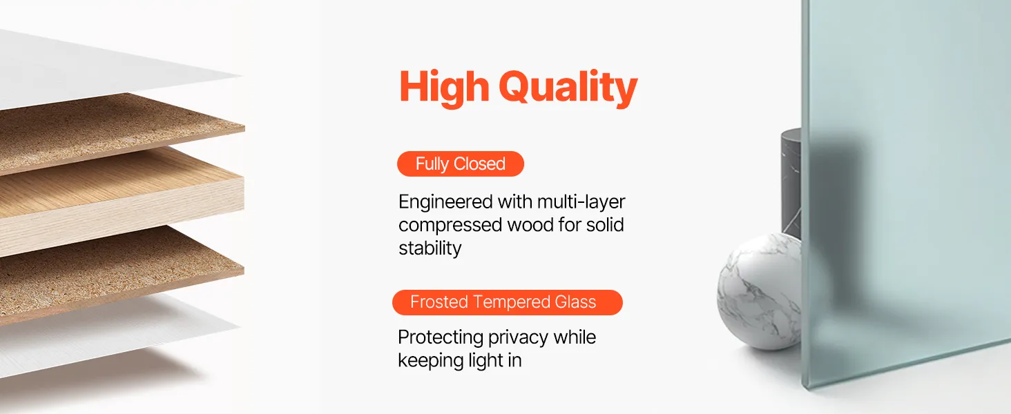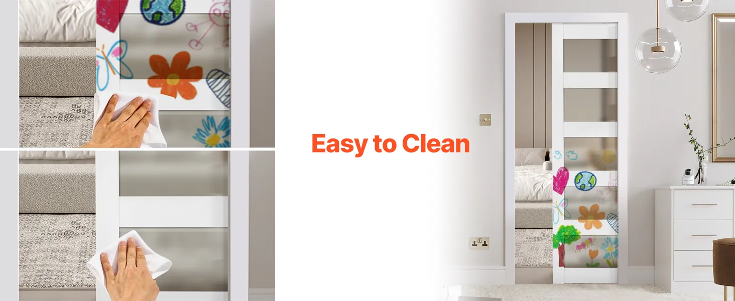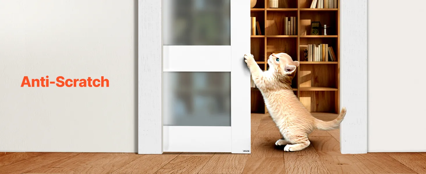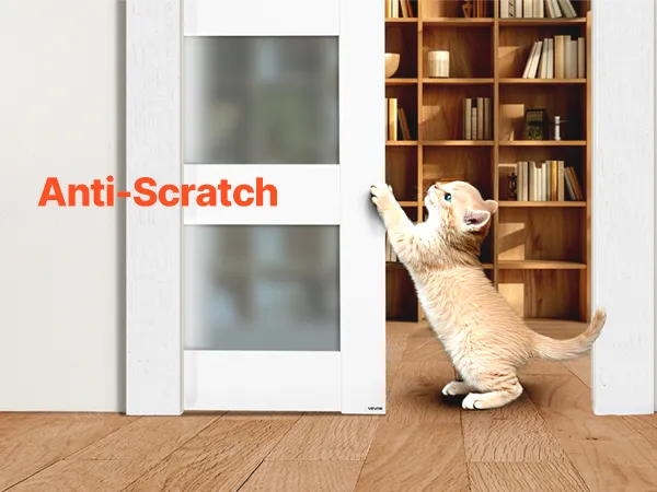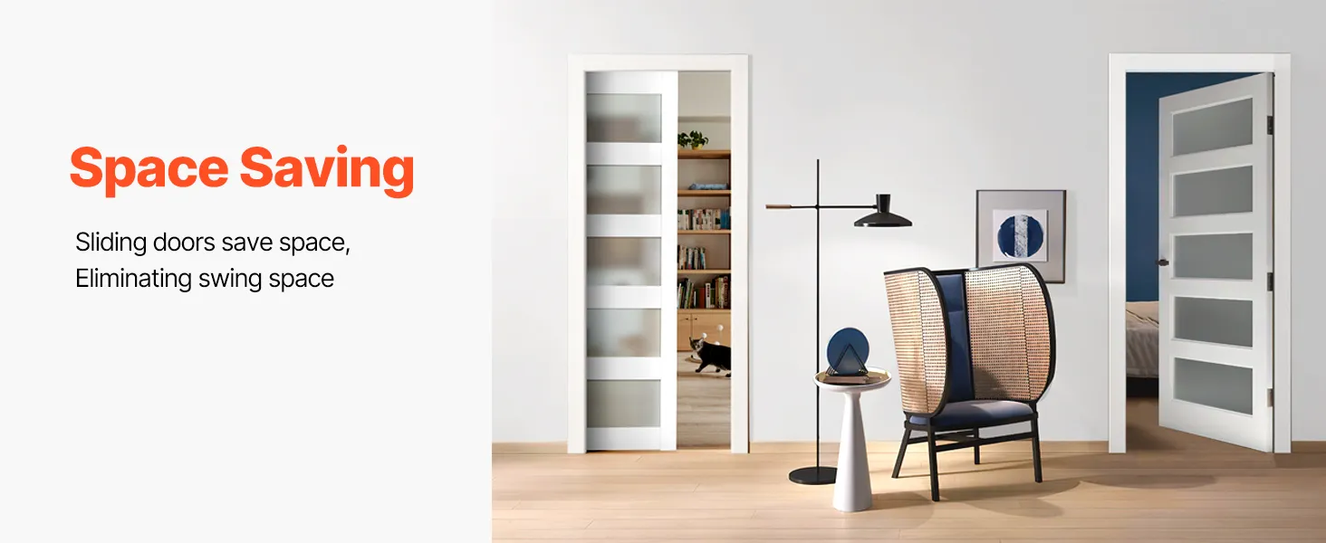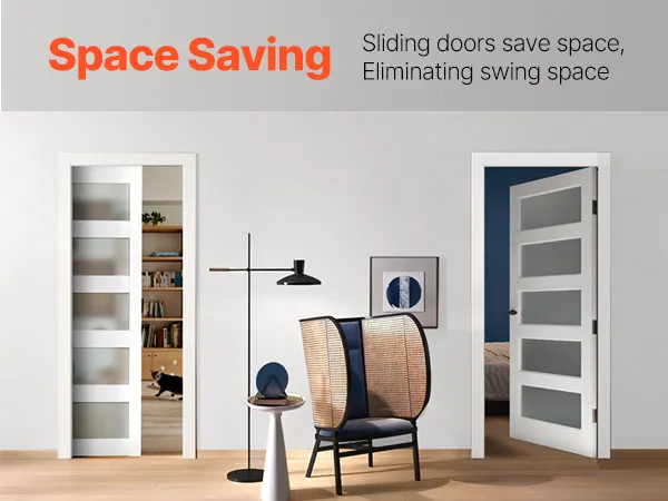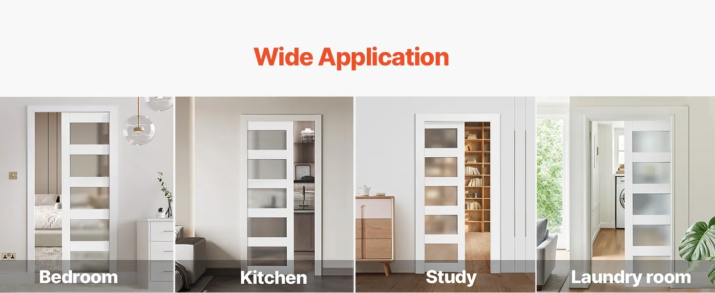 Our sliding pocket door features a sturdy wood and MDF frame, with 5-Lite frosted tempered glass, providing exceptional stability and durability.