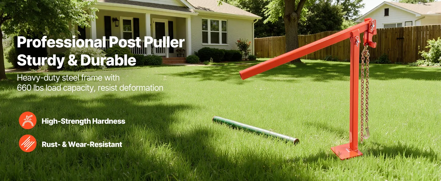 This fence post puller is built with a heavy-duty steel frame supporting up to 660 lbs without deforming. The surface is specially treated for rust and wear resistance, making it tough enough to handle professional post pulling in various settings.