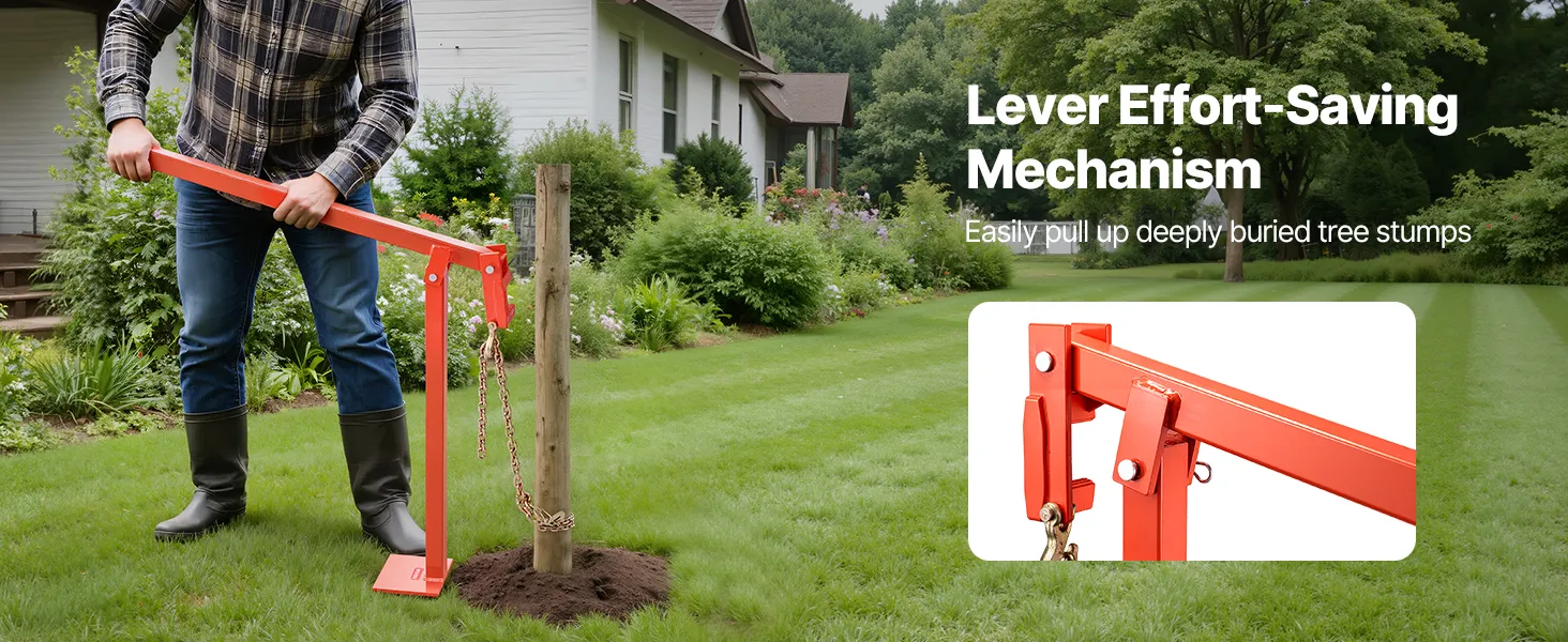 This T-post puller features a lever effort-saving mechanism to generate a strong pulling force with minimal effort. It allows you to easily extract deeply buried or stubborn posts and stumps, saving time and energy for quick, efficient work.