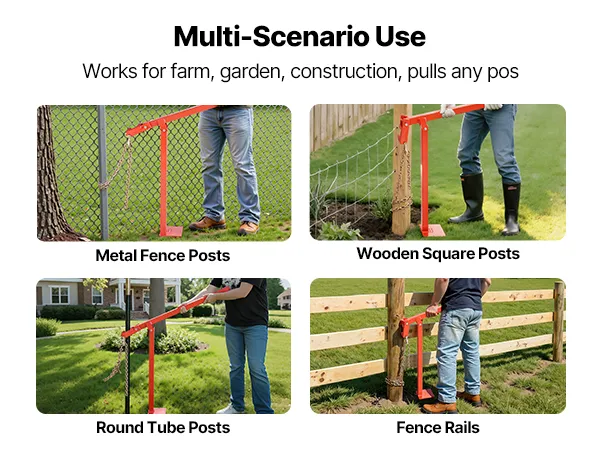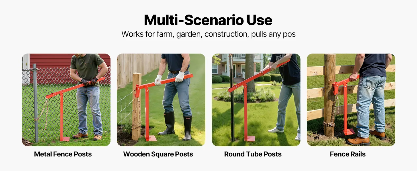 This quick pull post puller is ideal for farms, gardens, and construction sites, easily extracting metal fence posts, wooden posts, and square posts. One tool handles multiple tasks without electricity, enabling efficient and convenient operation.