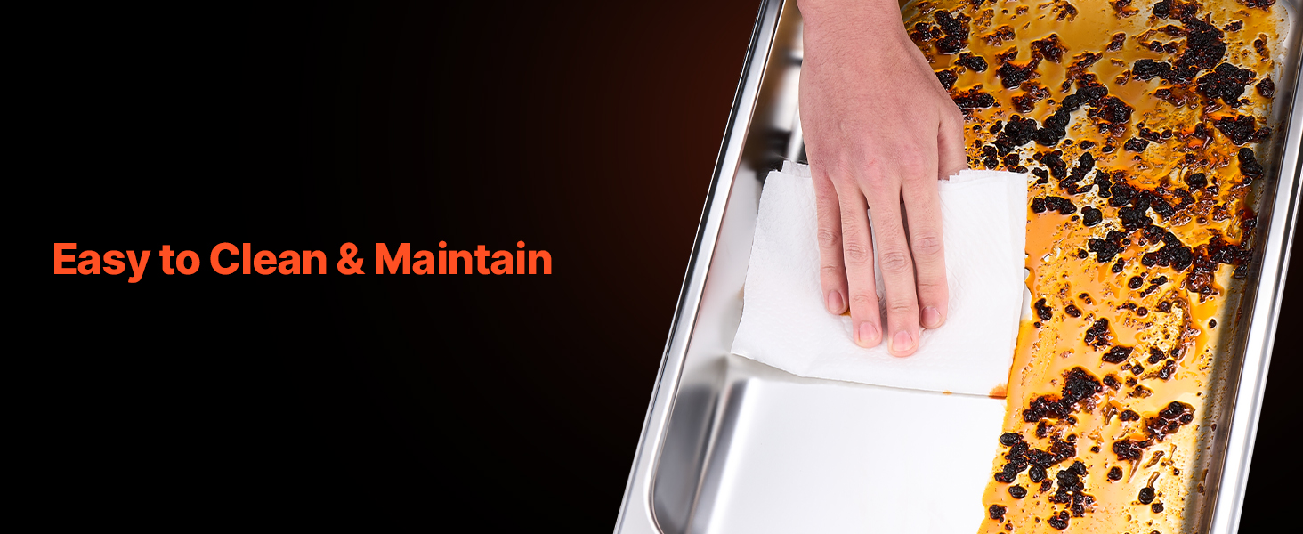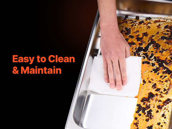 A2: Yes, the chafing dish is made from durable stainless steel, which makes cleaning a breeze. The food pan and water pan are both removable for easy washing, and the frame can be wiped clean after each use.