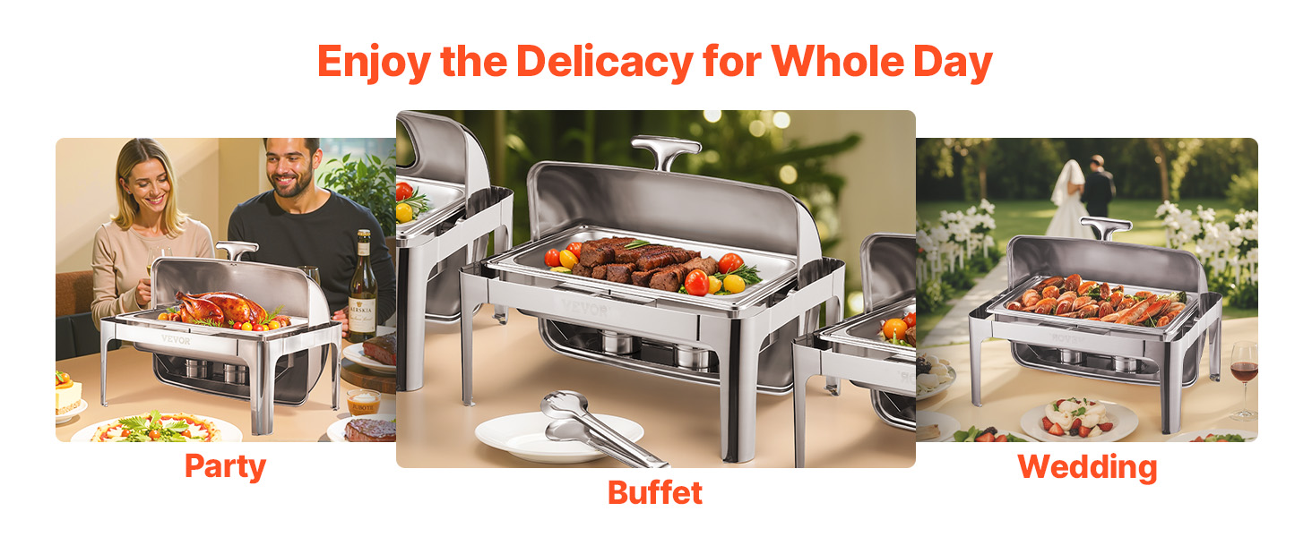 A3: Absolutely! This chafing dish is perfect for both indoor and outdoor events such as buffets, parties, or catering services. Just be sure to use it in a safe, stable area to prevent tipping.