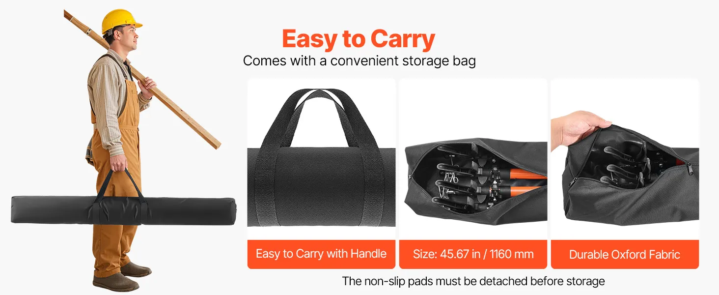 Comes with a durable carry bag for easy transport. Whether moving between floors on-site or responding to quick jobs, this 3rd hand support system keeps you ready. A must-have for pros and DIYers alike.