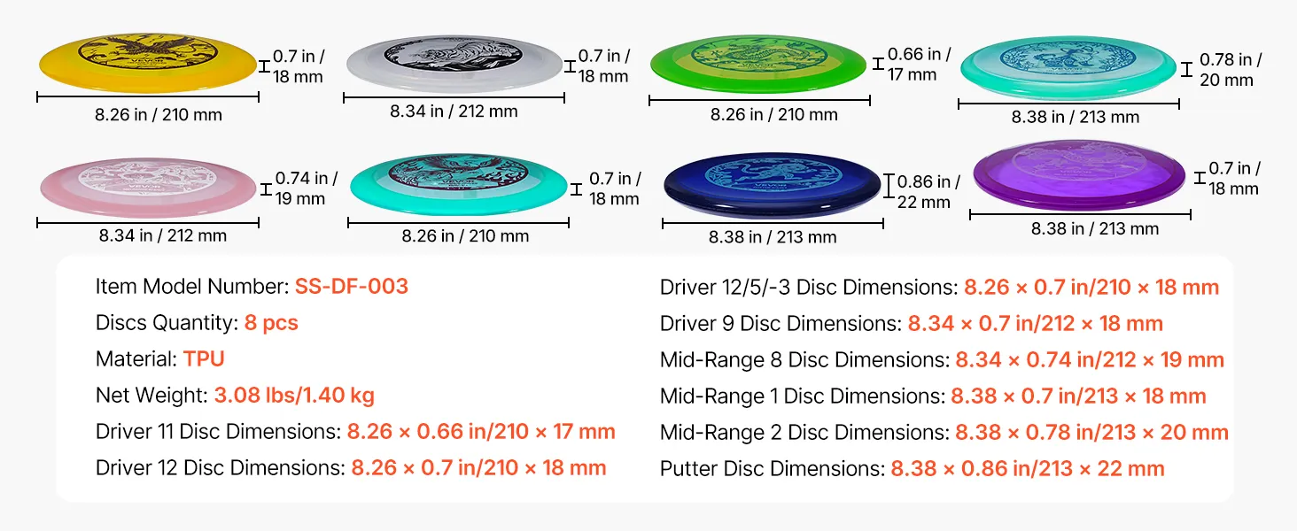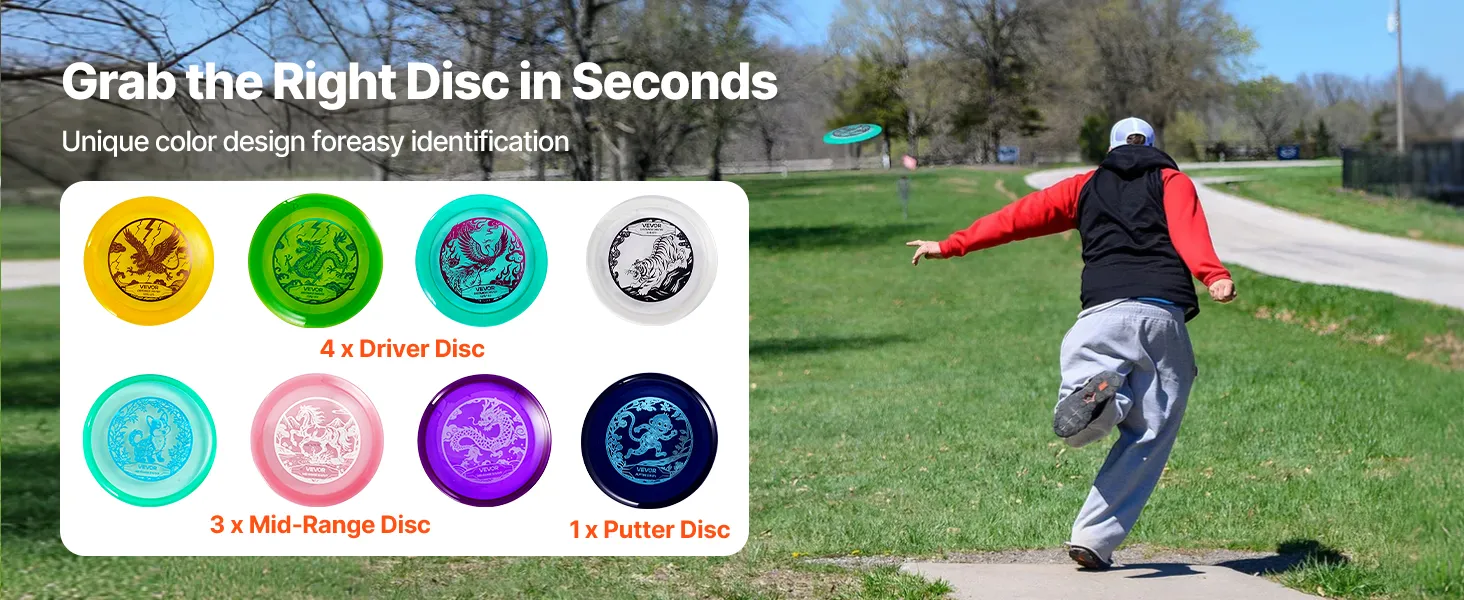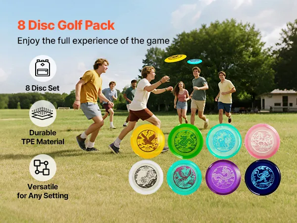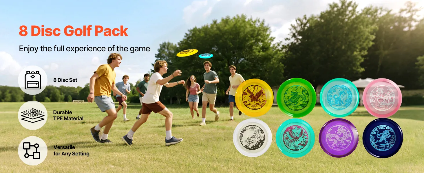 VEVOR Disc Golf Set, 8 Pack Disc Golf Starter Set, Beginners Flying Discs for Full-Body Strength Training, with Putter, Mid-Range, Driver, PDGA Approved, for Outdoor Backyard, Lawn, Beach, and Park