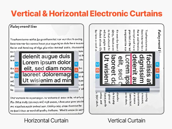 Equipped with horizontal and vertical reading lines, this electronic reading aid helps position text accurately on screen. It guides your eyes line by line, improving reading speed and concentration—especially useful for users with low vision.