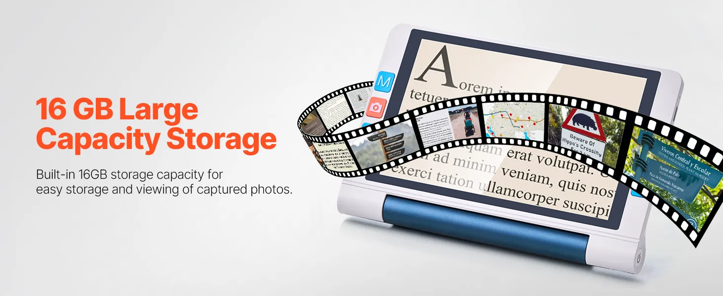 This digital magnifier for low vision features a 8-inch large touchscreen with 1280 x 800 high-definition resolution. It provides clear images, anti-glare display and comfortable viewing experience, ideal for those with low vision for daily reading or image viewing.