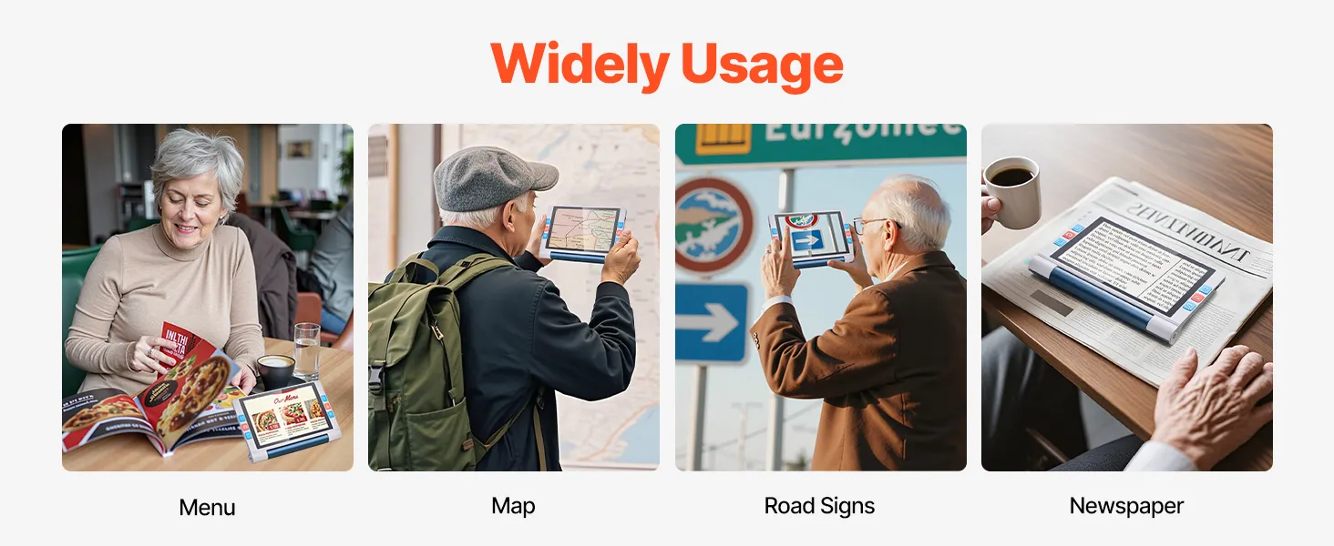 Whether you're reading a menu, checking a map, browsing a newspaper, or identifying road signs, this handheld digital magnifier helps you see the details more clearly—making your daily life and travel easier and more comfortable.