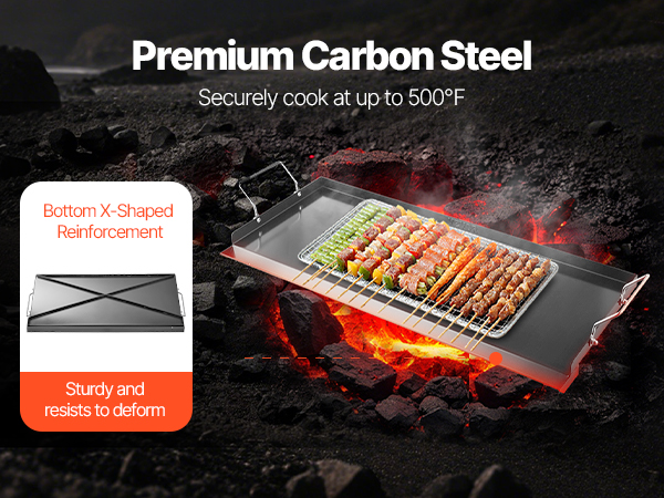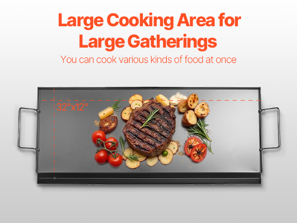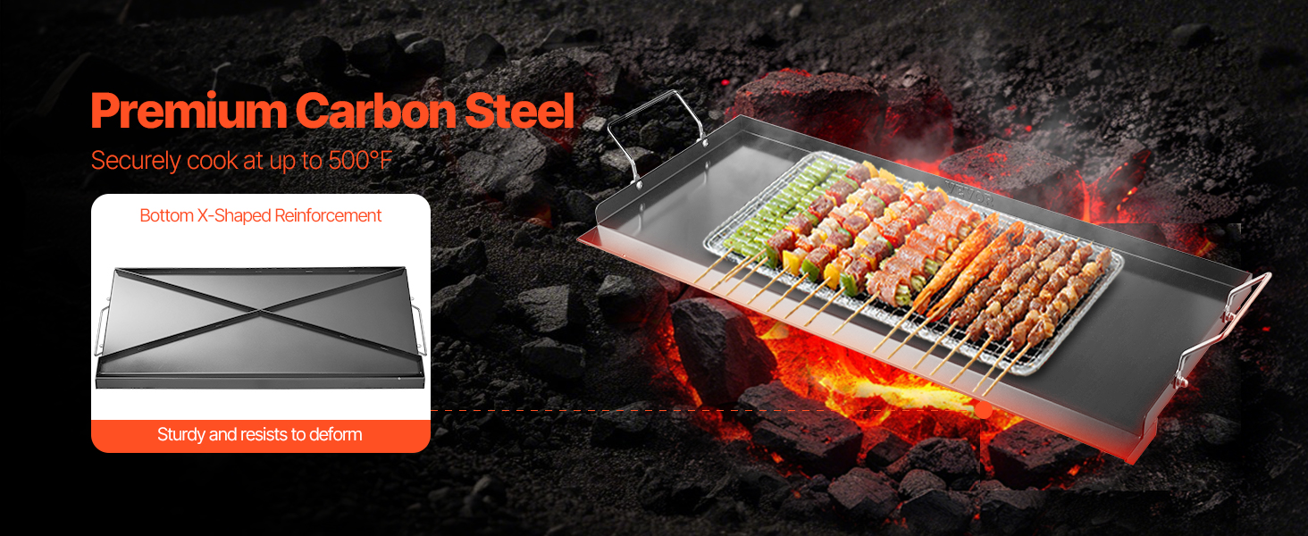 VEVOR Carbon Steel Griddle, 32x14 inch Universal Flat Top Rectangular Plate, Gas Grill Griddle for BBQ Grill, Teppanyaki, Portable Family Cookware with Handle, for Camping Tailgating Party