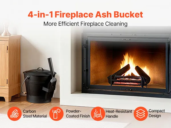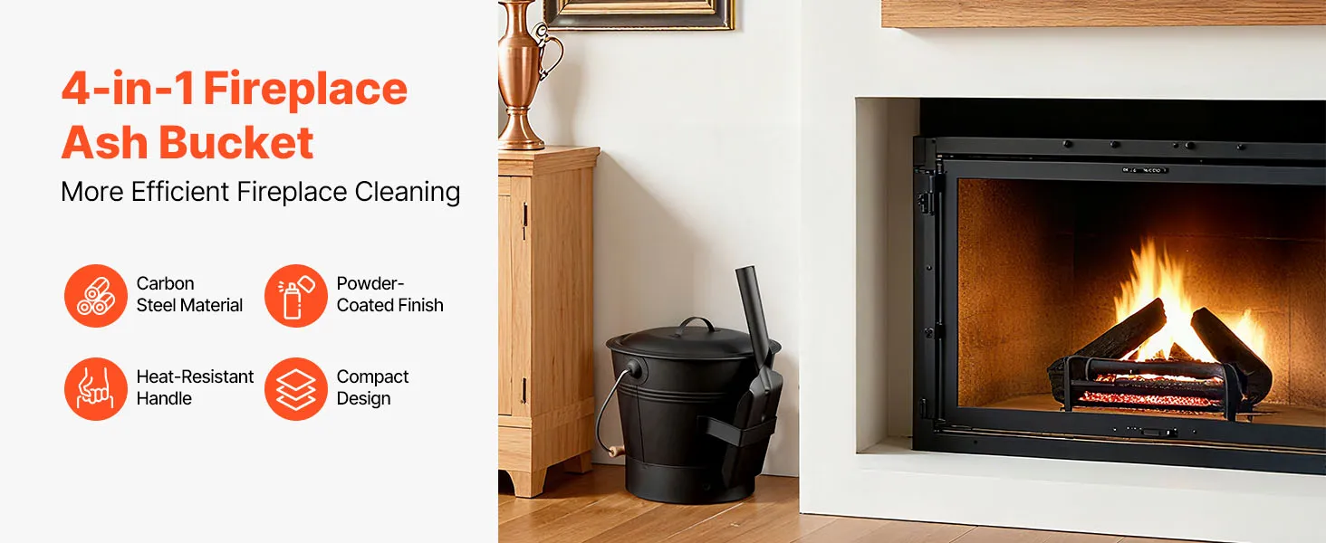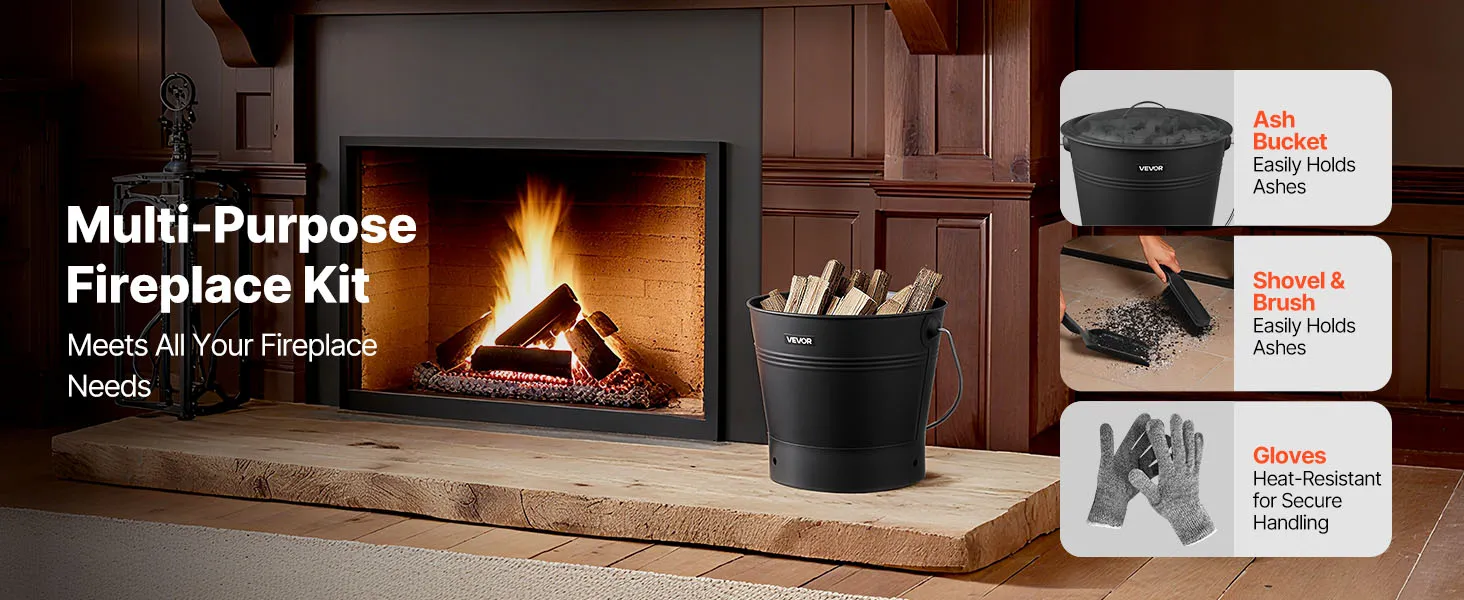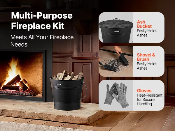 This fireplace ash bucket set includes a large bucket for ash and wood debris, a shovel and brush for quick cleanup, and heatproof gloves for hand protection. All tools work together, delivering more time-saving and labor-efficient fireplace cleaning.