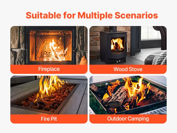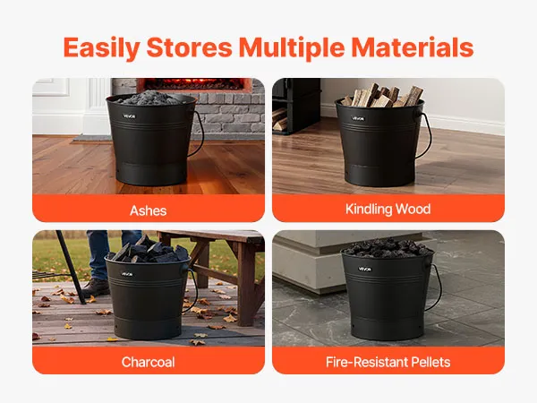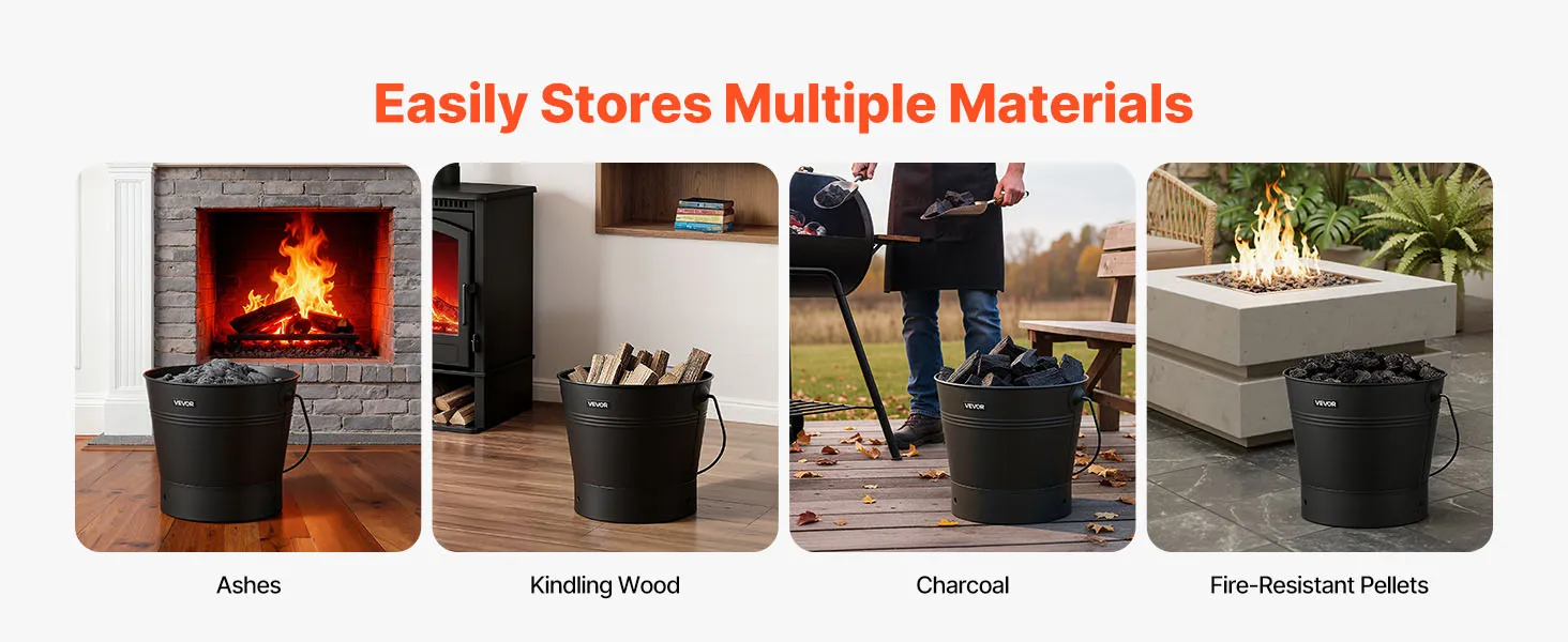 This fireplace ash bucket has broad usability, fitting various scenarios including home fireplaces, wood-burning stoves for heating, outdoor fire pit gatherings, and camping fire-starting. It effectively meets diverse usage needs.