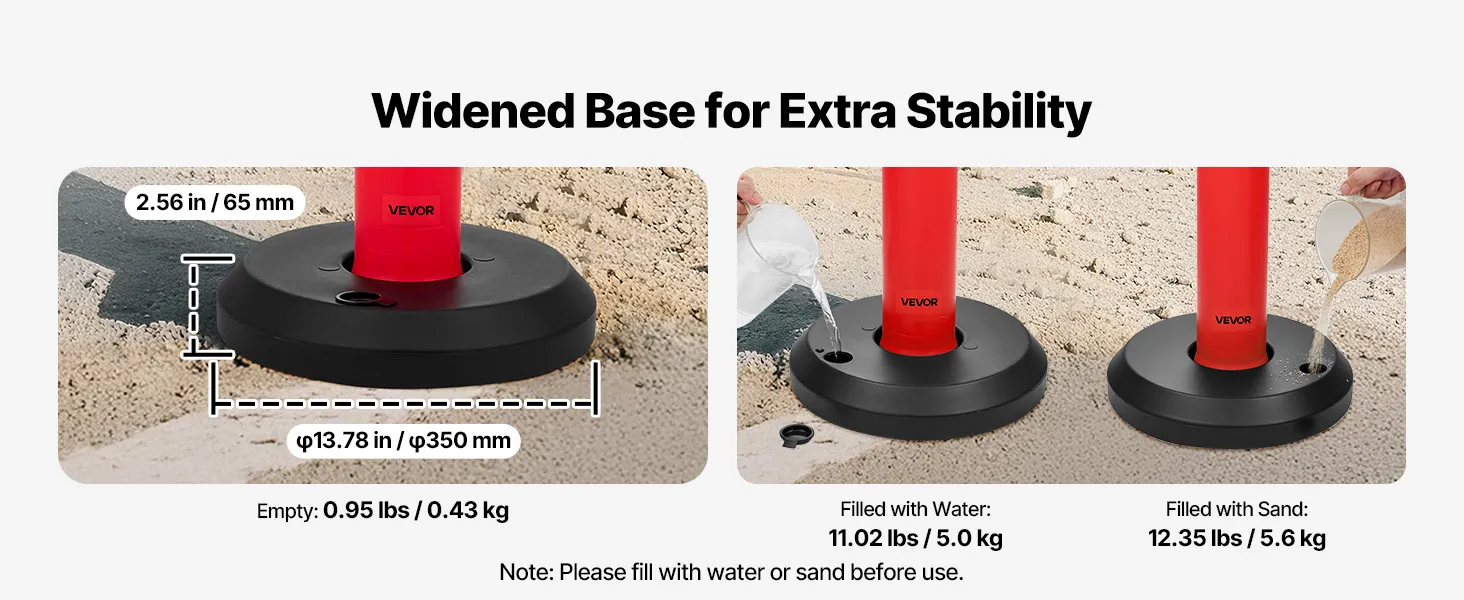 VEVOR 9 Pack Traffic Delineator Posts, 1140 mm Traffic Safety Cones with Fillable Base and Reflective Strips, Heavy Duty Delineator Posts for Construction Site, Parking Lot, Crowd Control, Red